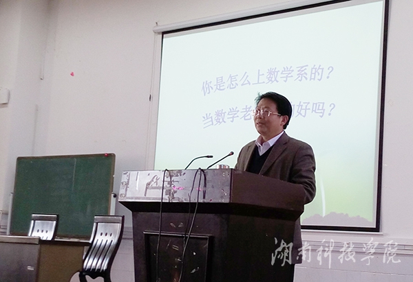 本网讯(通讯员 谢娟 杨珍)3月25日下午,湖南省教育科学院副院长赵雄辉研究员应邀来今年会就《数学课程的教育价值》专题进行讲学。讲座由该院院长唐耀平主持。部分教师和理学院数应专业学生参加。