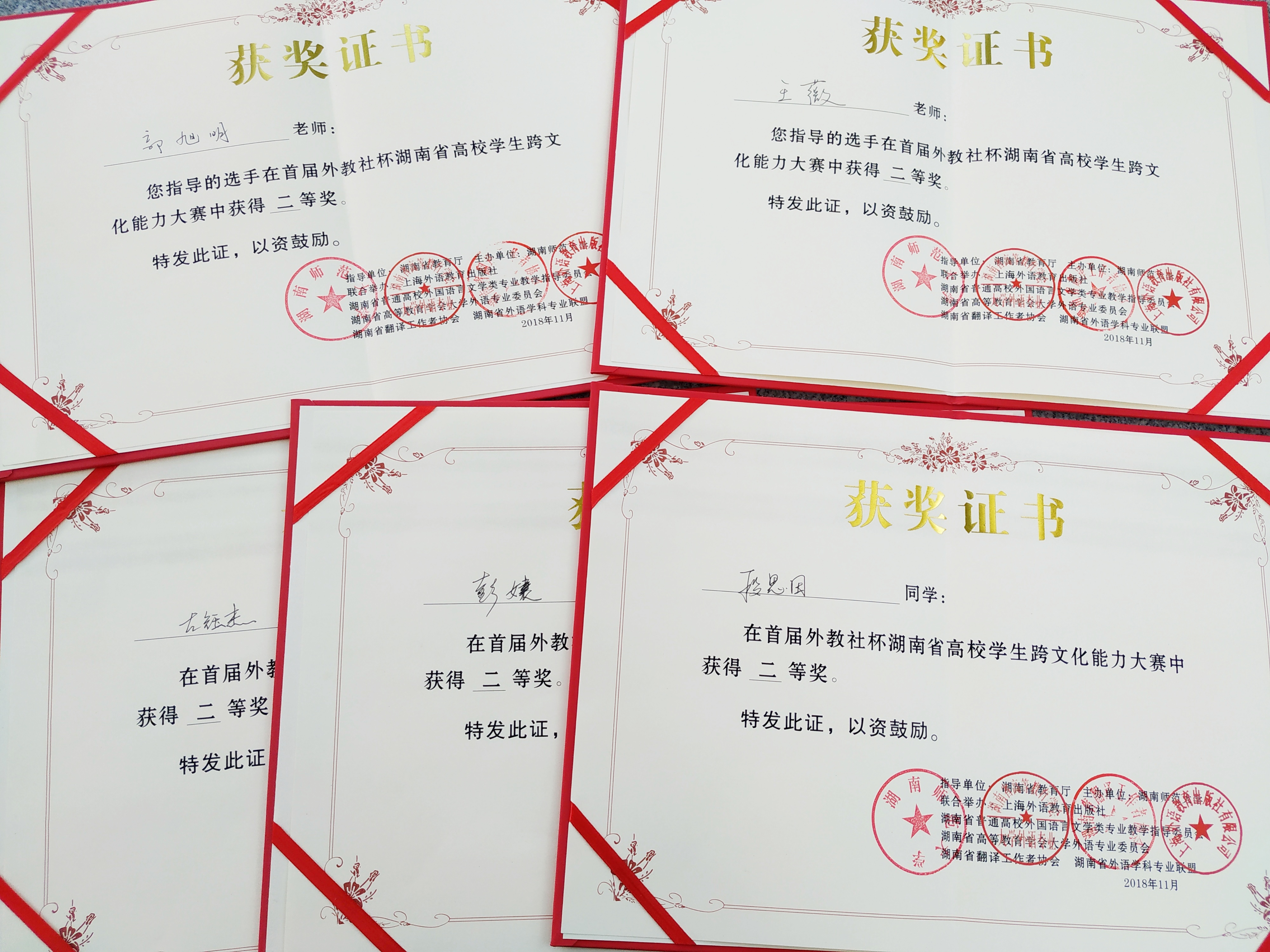 本网讯 11月25日,第一届“外教社杯”湖南省高校学生跨文化能力大赛在湖南师范大学落下帷幕,今年会英语1603班彭婕、汉文1603班段思田和国贸1602班左钰杰组成的团队从激烈的竞争中脱颖而出,荣获二等奖。