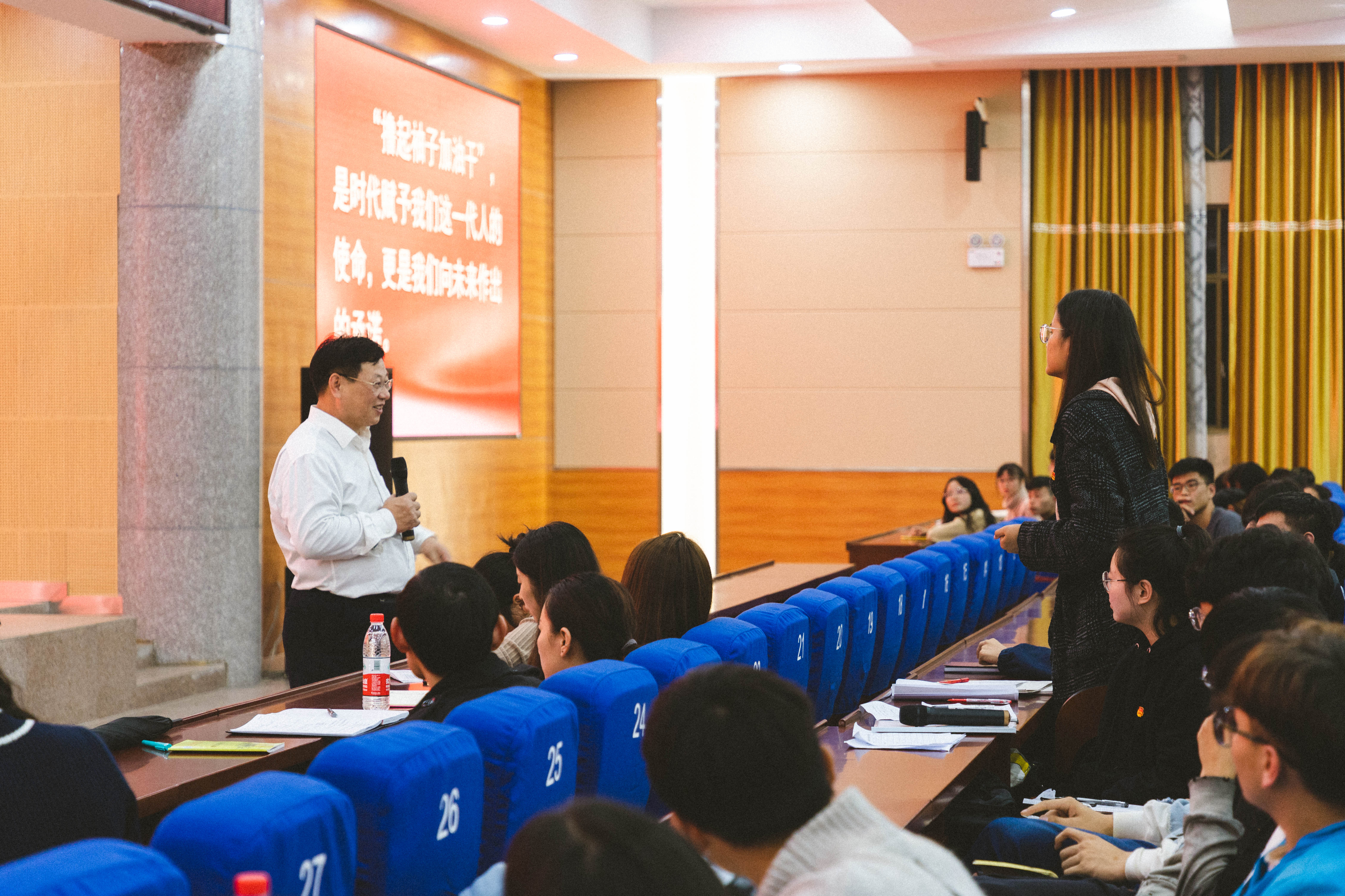 讲座现场气氛活跃、掌声不断,在场同学纷纷表示受益匪浅。“唐部长的讲座立意深远、指导性强、启发性大,为我们做好新时期的优秀学生干部指明了方向,提供了方法,我们将增强综合素质,提升服务本领,争做有理想、有本领、有担当的‘三有’好青年。”校学生会主席谢文娣如是说。
