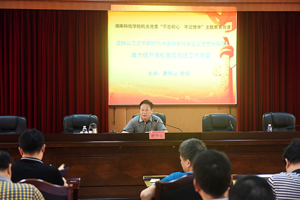 本网讯   7月3日下午,机关党委在行政楼八楼一会议组织开展“不忘初心,牢记使命”主题学习教育党课活动。党课由学工部部长、机关党委副书记唐华山主讲,机关党委130余名党员参加活动。