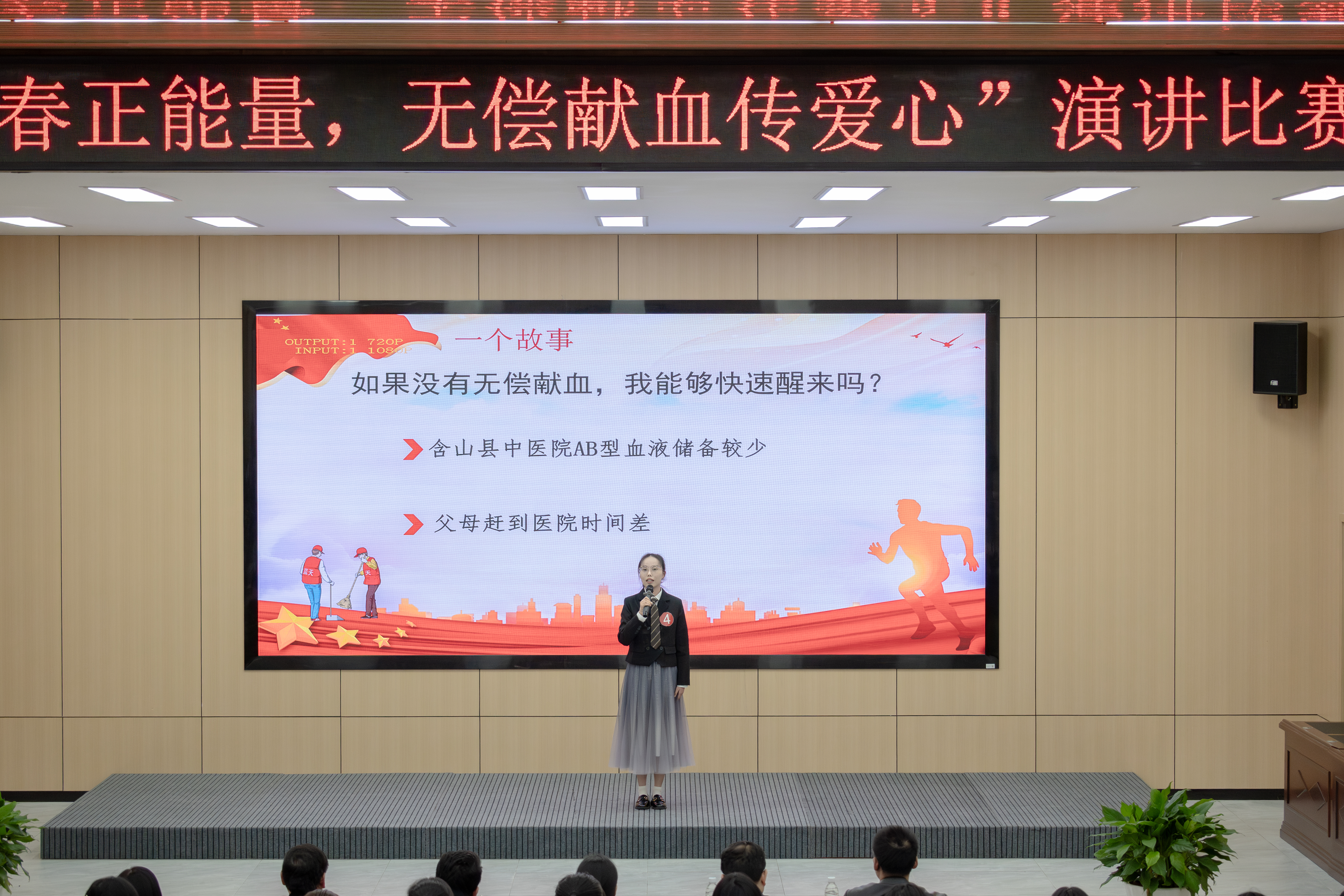 比赛中,选手们围绕“无偿献血”这一主题依次上台演讲,运用PPT、音乐、视频等形式,结合他人经历、个人体会、政策法规、健康知识等方面,讲述了献血者和志愿者的爱心故事,以及自己对无偿献血公益事业的认识和感悟。他们或激情澎湃,或饱含深情,细致的讲解使同学们对无偿献血有了正确的认识,更将“捐献可以再生的血液,挽救不可重来的生命”的意识深深烙印在了心里。活动间隙,永州市中心血站工作人员通过发放无偿献血知识宣传页、开展有奖问答等形式,营造了良好的宣传氛围。经过激烈角逐,来自文法学院的许颖欣荣获一等奖,经济与管理学院余洲等荣获二等奖,理学院朱洪民等荣获三等奖。