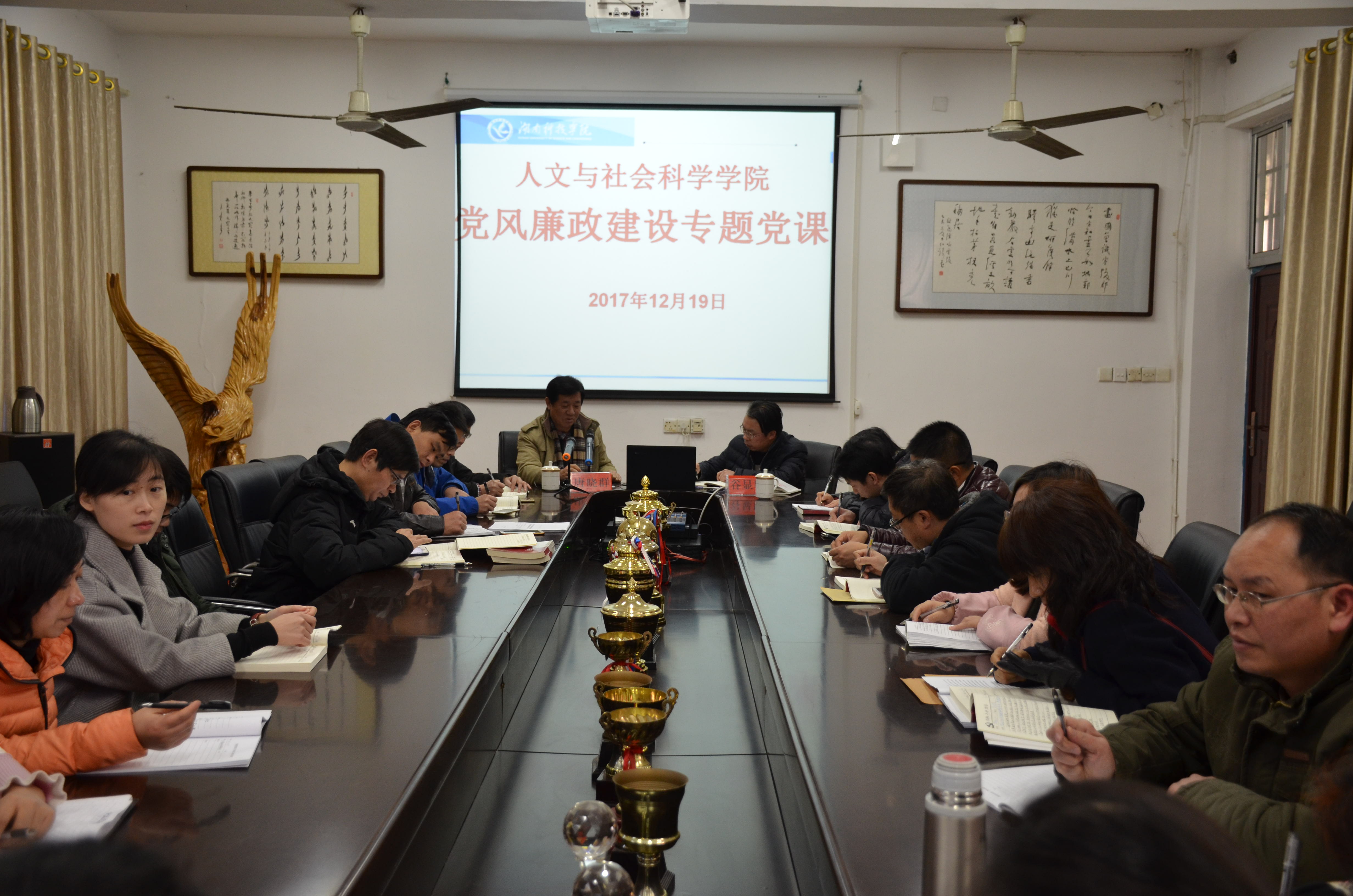 本网讯 为贯彻落实全面从严治党,推进党风廉政建设,12月19日下午,人文与社会科学学院在明德楼开展党员教育学习活动,邀请校纪委副书记、监察处处长唐晓群同志为该院全体教师党员和学生党员上党风廉政建设专题党课,辅导大家深入学习党的知识和理论。