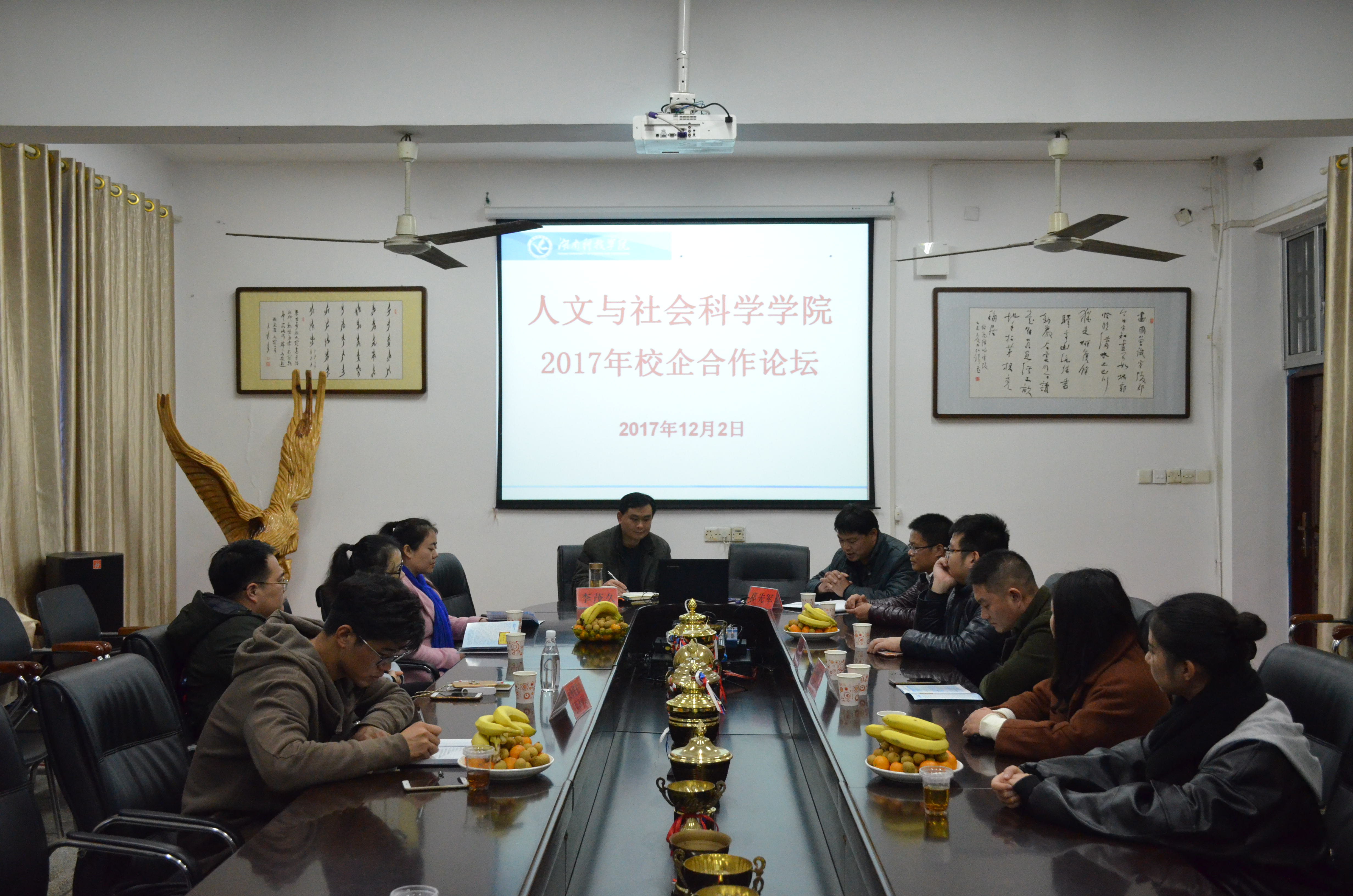 本网讯 12月2日下午,人文学院在明德楼举行2017年“校企合作论坛”。参加“湘南地区暨永州市2017年高校毕业生供需见面会”的部分用人单位负责人、该院党总支副书记兼副院长邓先军、副院长李茂久参加了本次论坛。