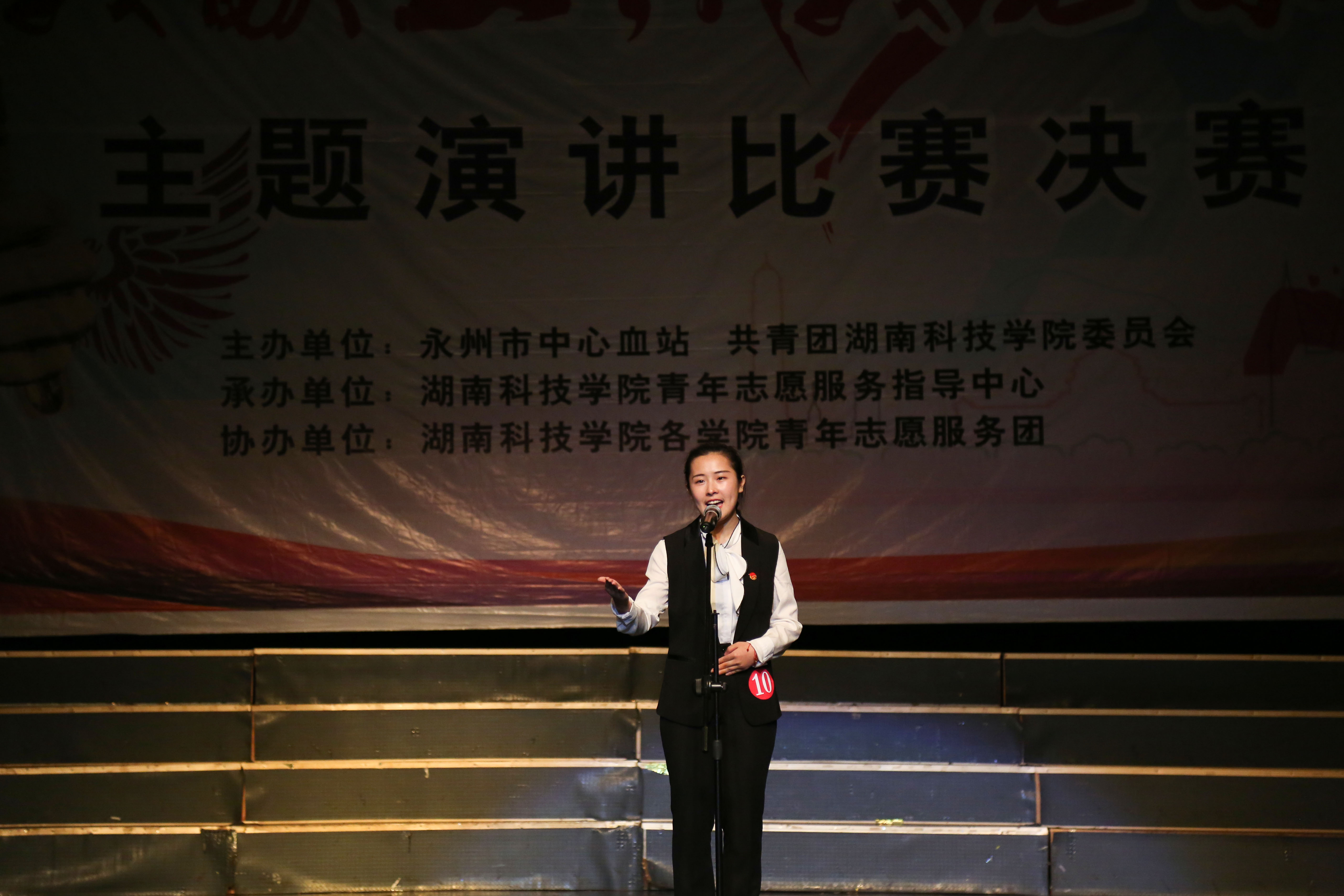本网讯 4月7日晚,由共青团今年会jinnianhuicom委员会、永州市中心血站联合主办,学校青年志愿服务指导中心承办的“我献血,我光荣”主题演讲比赛在音乐厅举行。永州市中心血站党支部书记、站长郑淑山,校团委副书记刘佳等应邀出席并担任评委。
