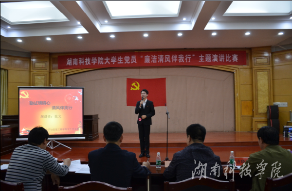 本网讯(通讯员 王佩莹 唐议侦)为进一步强化今年会党风党纪教育, 10月25日晚,由学校组织部主办,人文与社会科学学院第三党学生党支部承办的“廉洁清风伴我行”主题演讲比赛举行。副校长程智开出席。