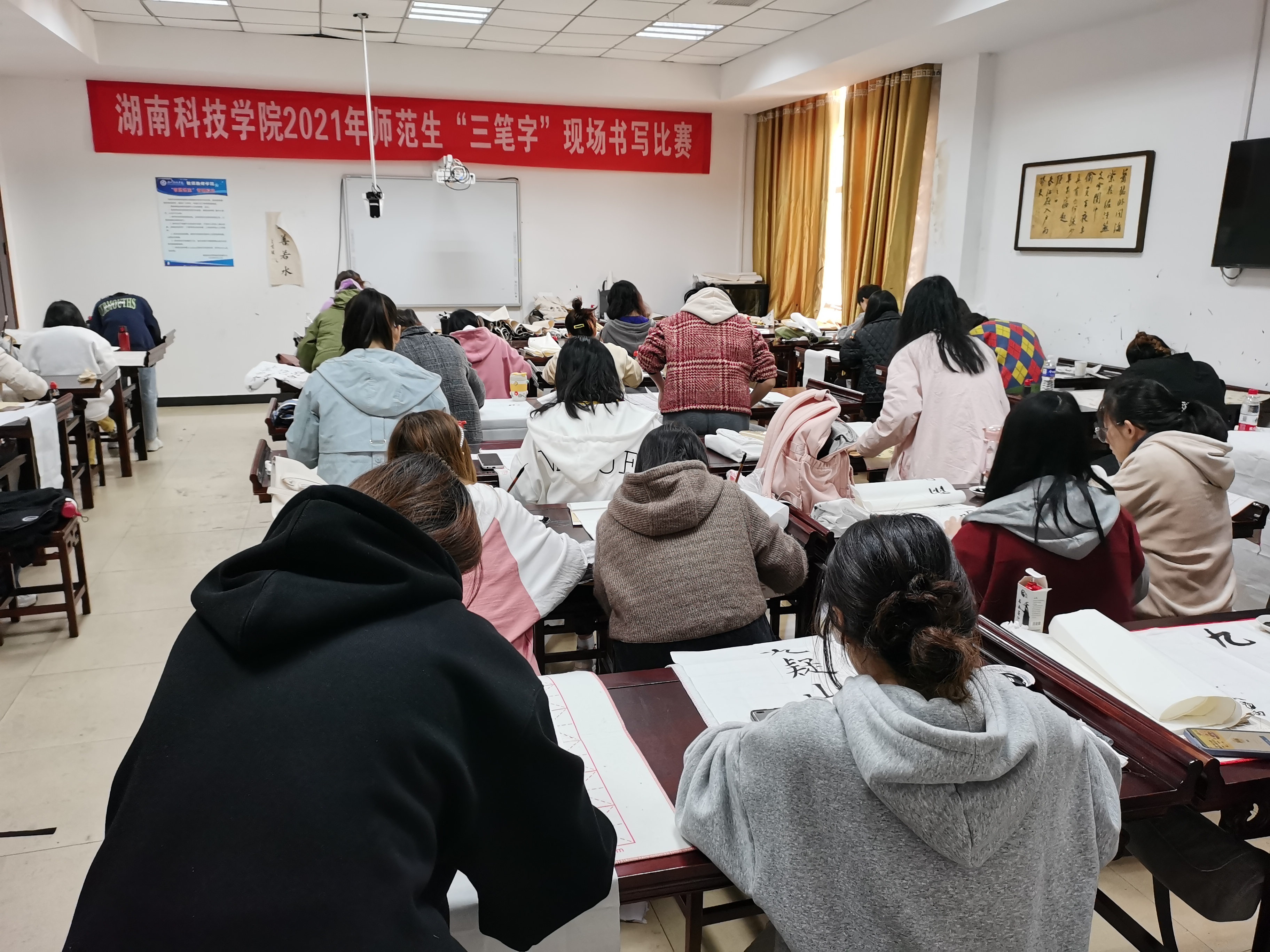 本网讯(胡勇胜)为深入推进卓越教师培养计划,营造墨香校园氛围,提升师范生的基本教师职业技能,学校于11月13日举行了师范生“三笔字”现场书写比赛。来自全校9个师范专业的1200余名学生分别参加了钢笔字、毛笔字、粉笔字三个类别的比赛。