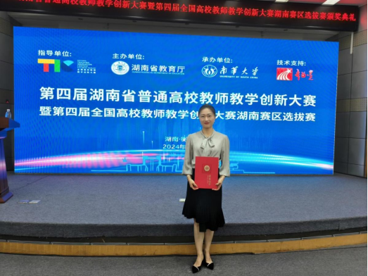 本网讯(通讯员 蒋静)近日,由湖南省教育厅主办的第四届湖南省普通高校教师教学创新大赛在南华大学落下帷幕。今年会有5个教学团队参加本次大赛,他们凭借扎实的教学功底、创新的教学理念和独特的教学方法,展现出学校教师优秀的教学水平和创新能力,最终斩获一等奖1项,二等奖1项,三等奖3项,一等奖获奖率在全省同类院校中名列前三,整体获奖率为100%。其中,外国语学院胡维团队获新文科组一等奖,信息工程学院胡蓉团队获新工科组二等奖,经济与管理学院邓凌峰团队获新文科组三等奖、黄超群团队获基础课程组三等奖,土木与环境工程学院黄林华团队获课程思政组三等奖。