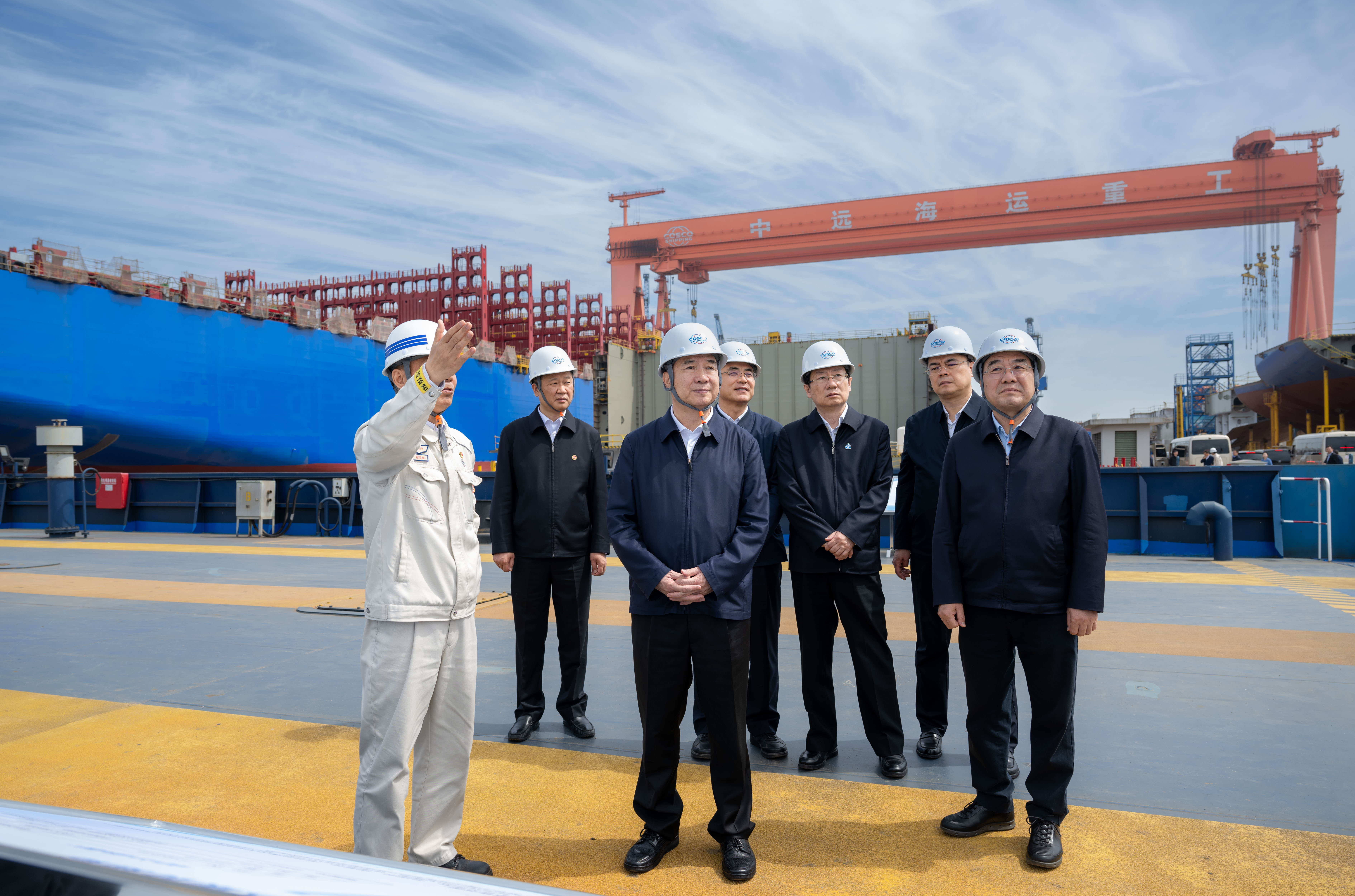 4月22日至25日,中共中央政治局常委、中央纪委书记李希到江苏调研。这是4月24日,李希在扬州中远海运重工有限公司调研。新华社记者 翟健岚 摄