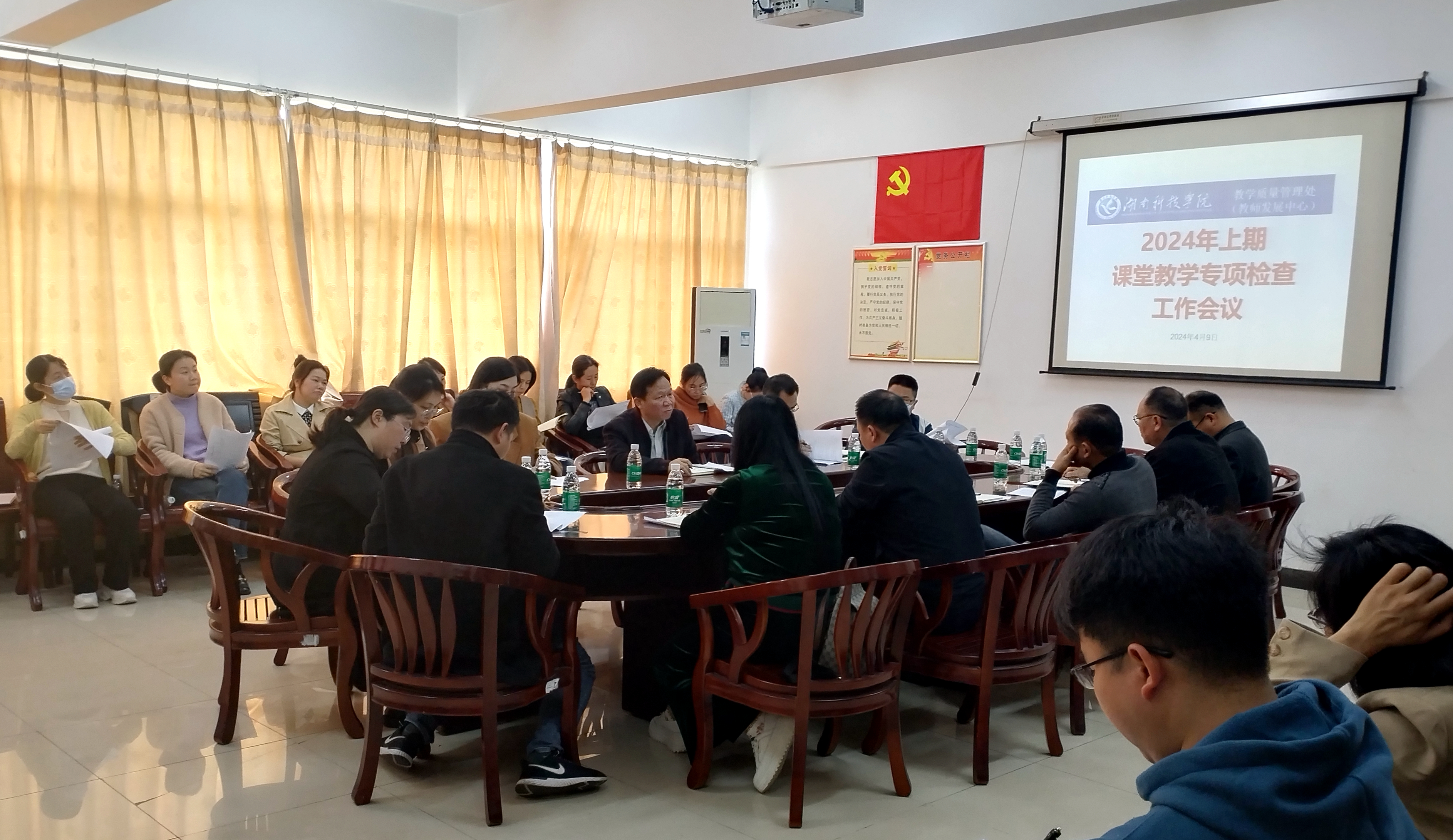 为进一步规范教学管理,提高教学质量,优化教风学风,4月9日下午,今年会在行政楼413会议室召开2024年上期课堂教学专项检查工作会议。教学学院主管教学工作副院长、教务办人员及全体教学专项检查工作人员参加会议。