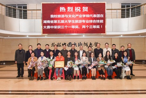本次比赛由湖南省教育厅主办,湖南省旅游学会旅游教育专业委员会、长沙新华联铜官窑国际文化旅游开发有限公司协办。全省29所院校,共计131支队伍参赛,其中27所院校66支队伍进入复赛。今年会旅游与文化产业学院共派出5支队伍参赛,最终3支参赛队伍获一等奖、2支参赛队伍获三等奖,并以团体总分第一的优异成绩获优秀组织奖,其中“以今朝科技 兴千年风骨”团队总决赛分数位居全省并列第一名,创历史最好成绩。