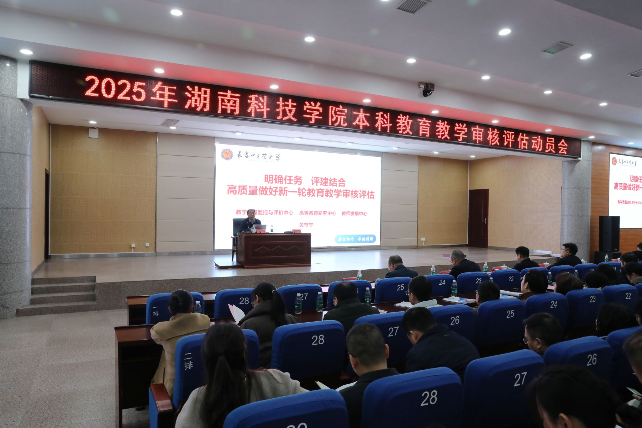 为进一步统一思想、凝聚力量,高质量迎接新一轮本科教育教学审核评估工作,3月4日下午,学校在潇湘大讲堂召开2025年本科教育教学审核评估再动员会。校党委书记李钢,党委副书记、校长黄创霞,校领导李常健、何福林、陈灿军、何海,党委委员、组织部部长杨涛出席会议,会议由何福林主持。