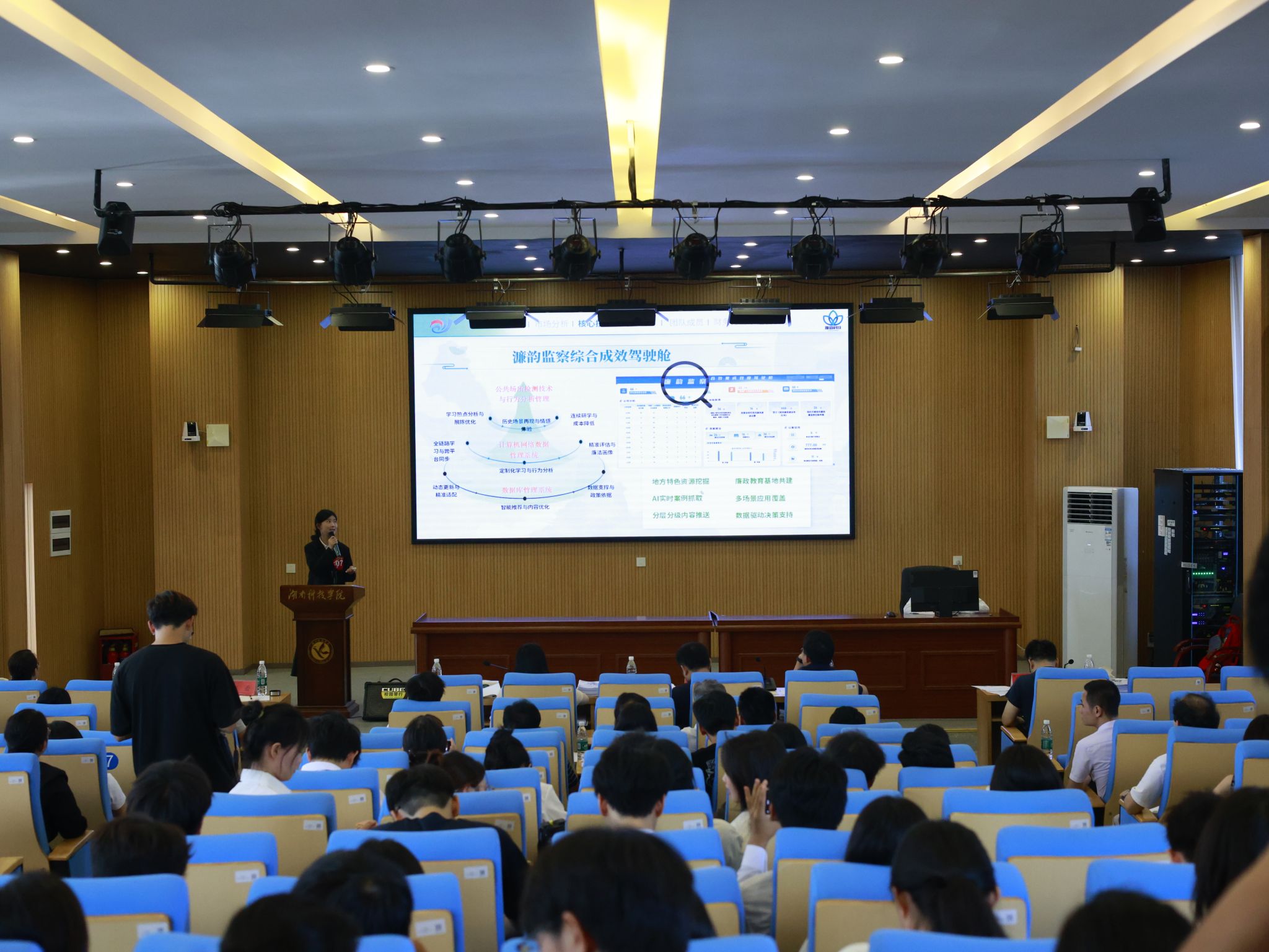 本届大赛经广泛宣传动员、项目团队报名、院赛选拔推荐、组织专家评审等环节,共遴选出37个项目团队晋级总决赛。各参赛团队通过PPT对项目背景、核心优势、商业模式、财务计划、团队架构等方面进行全面展示。评委们从个人成长、项目创新、发展前景、产业价值、团队协作等维度进行质询打分并提出指导性意见。