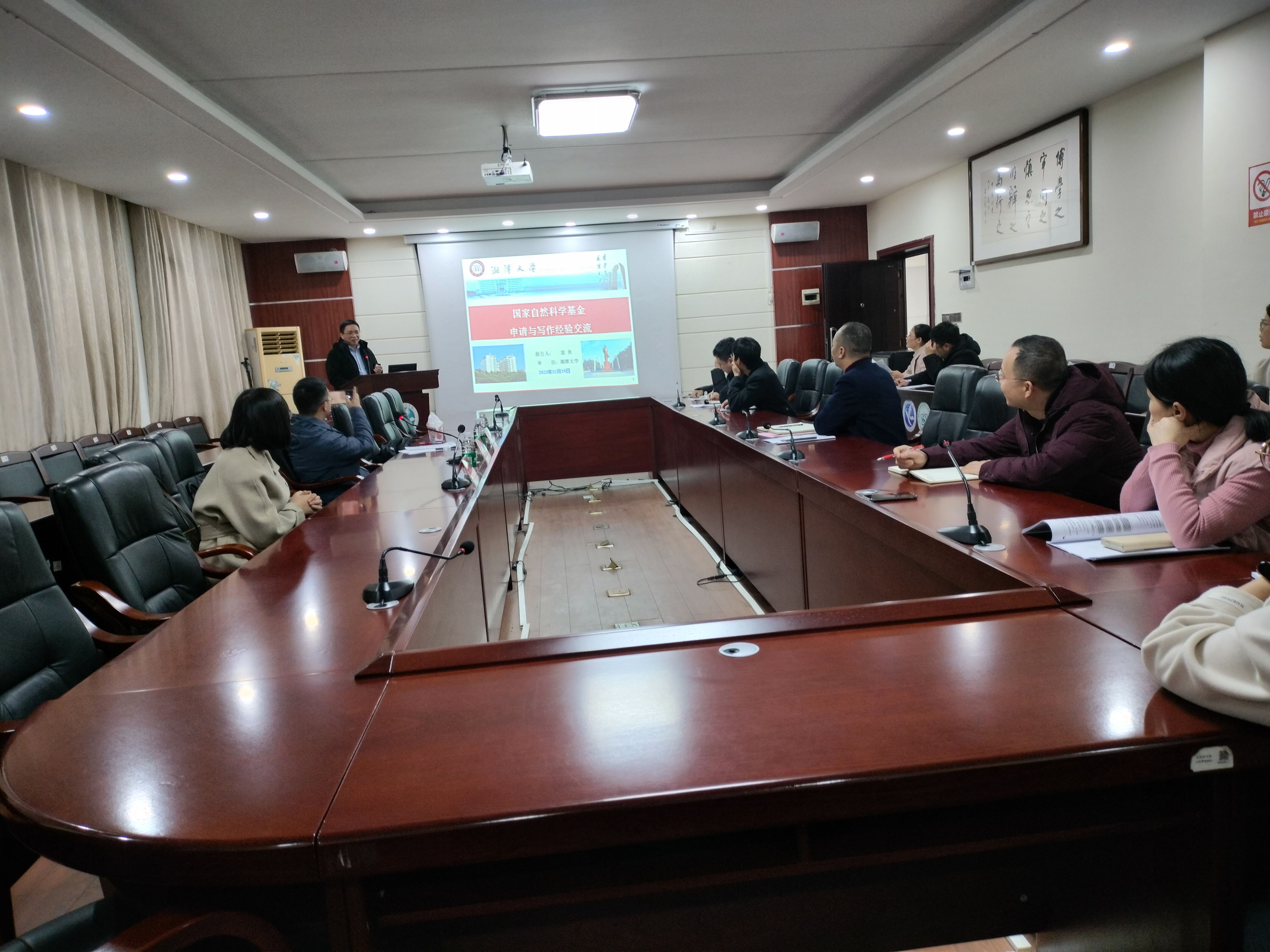 本网讯 11月16日-17日,湘潭大学裴勇教授、南京大学王乐勇教授、湖南农业大学伍树松教授、潘浪教授、叶能辉教授、吴德志教授、湘潭大学汪璞和马忠云副教授等有成功申报和主持多项国家自然科学基金面上、青年项目的专家学者通过线上或线下的方式受邀为今年会教师做国家自然科学基金申请经验分享与交流报告。报告结束后,专家们对今年会明年拟申报基金的教师进行一对一、面对面指导基金写作。会后,参加报告和写作指导会的教师均表示,这种基金申报辅导报告和写作指导针对性强、效果好,对申请国家自然科学基金大有裨益。