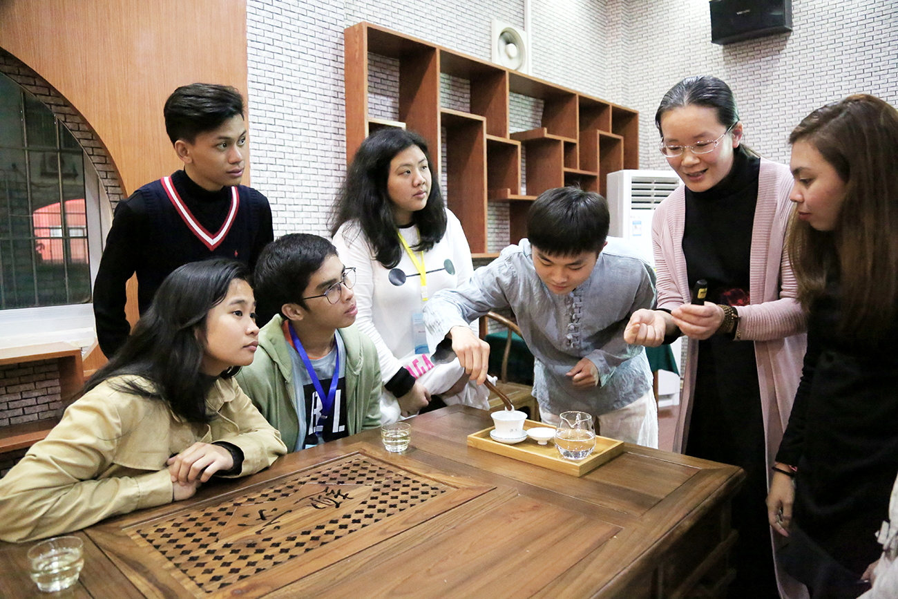 在经济与管理学院茶艺室,莱西姆大学师生学习茶艺,品尝各种茶饮,体验了中国茶道文化。