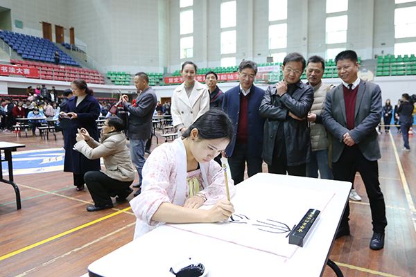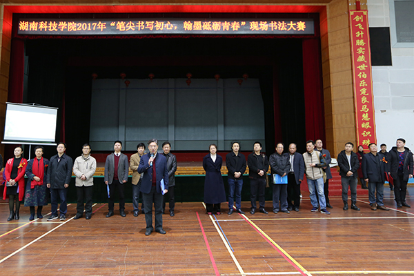 当天,永州市委常委、宣传部长刘尤碧,永州市人大常委会副主任魏湘江,永州市文联主席蒋蒲英,湖南省书法家协会副主席刘晓斌,湖南省艺术协会常务理事刘建平,永州市书法家协会主席唐朝晖,校党委副书记唐艳明,副校长宋宏福、程智开等出席参与活动。活动还吸引了校内外书法专家、爱好者及近千名师生参与。