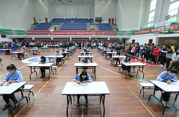 由校团委举办,美术与艺术设计学院承办的书法大赛深得大家喜爱,现场,师生齐挥毫,一幅幅笔力劲挺的书法引得在场师生连连惊叹。参赛选手们皆身着汉服等传统服饰,一个个聚精会神,胸有成竹。马克思主义学院的蒙雪冬同学以一幅小篆“天行健,君子以自强不息;地势坤,君子以厚德载物”获得了大家的连连点赞。现场,一幅幅书法作品跃然眼前,有的气势磅礴,生动灵逸,有的苍劲古拙,韵味高雅,有的则行云流水,随意洒脱。