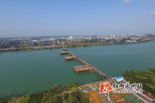 城南大桥横跨湘江,连通冷水滩区与经开区的交通要道,主桥长380米,宽32米,主塔高21米,主桥结构为三塔双索面矮塔斜拉桥,预计2018年8月份完工。中铁十七局集团在城南大桥建设伊始就遵循高标准起点、高要求建设、高质量施工,成为永州市安全文明标准化建设标杆工地,得到了永州市人民和市城投的认可和好评,60多家建筑施工单位前来观摩学习。