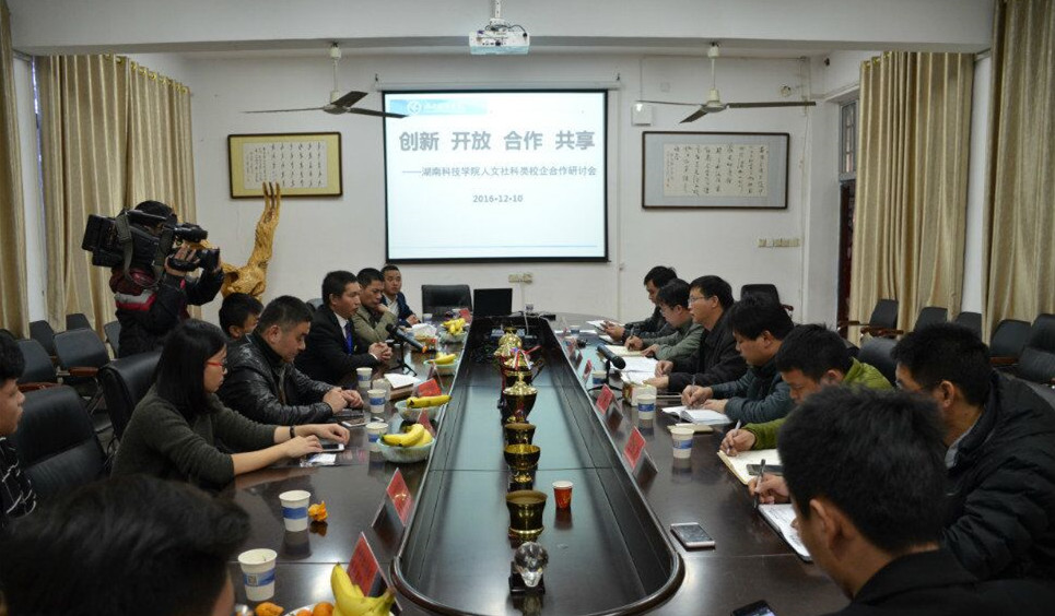 本网讯 12月10日下午,人文社科类专业校企合作研讨会在明德楼203会议室举行。人文与社会科学学院院长潘雁飞、党总支书记谷显明以及十多位企业代表和负责人参加研讨会。