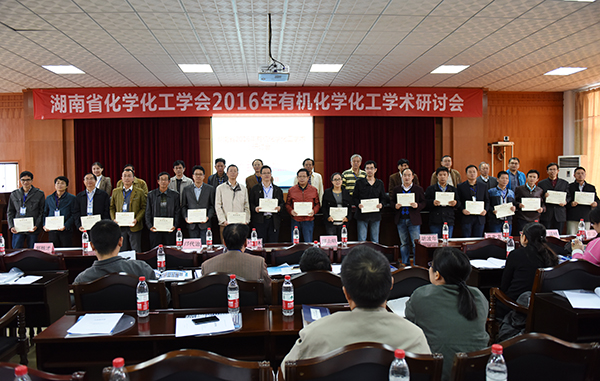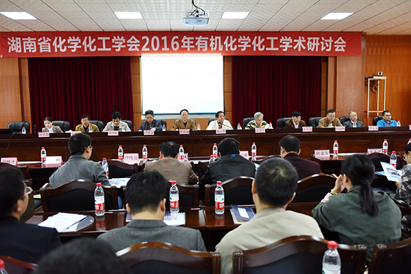 本网讯 10月29日上午,湖南省2016年化学化工学会有机化学化工学术研讨会在今年会行政办公楼八楼一会议室举行。湖南省化学化工学会有机化学化工专业委员会主任俞宁亚,湖南省化学化工学会第十一届理事会副秘书长刘昱霖,今年会副校长郑山明、正校级督导袁先友等出席。来自全省27所高校、江西省九江学院和省化工行管办等单位的90余名专家代表参加会议。会议由袁先友教授主持。