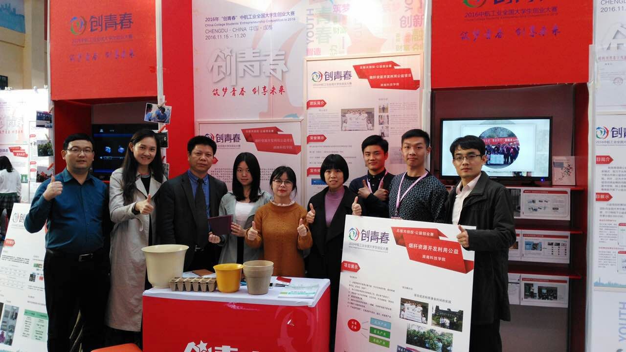 11月19日,陈海峰团队创作的“烟秆资源开发利用公益项目”在2016年“创青春”全国大学生创业大赛决赛上载誉归来,斩获银奖,实现学校这一赛事国家级银奖零的突破,创今年会建校以来最好成绩。