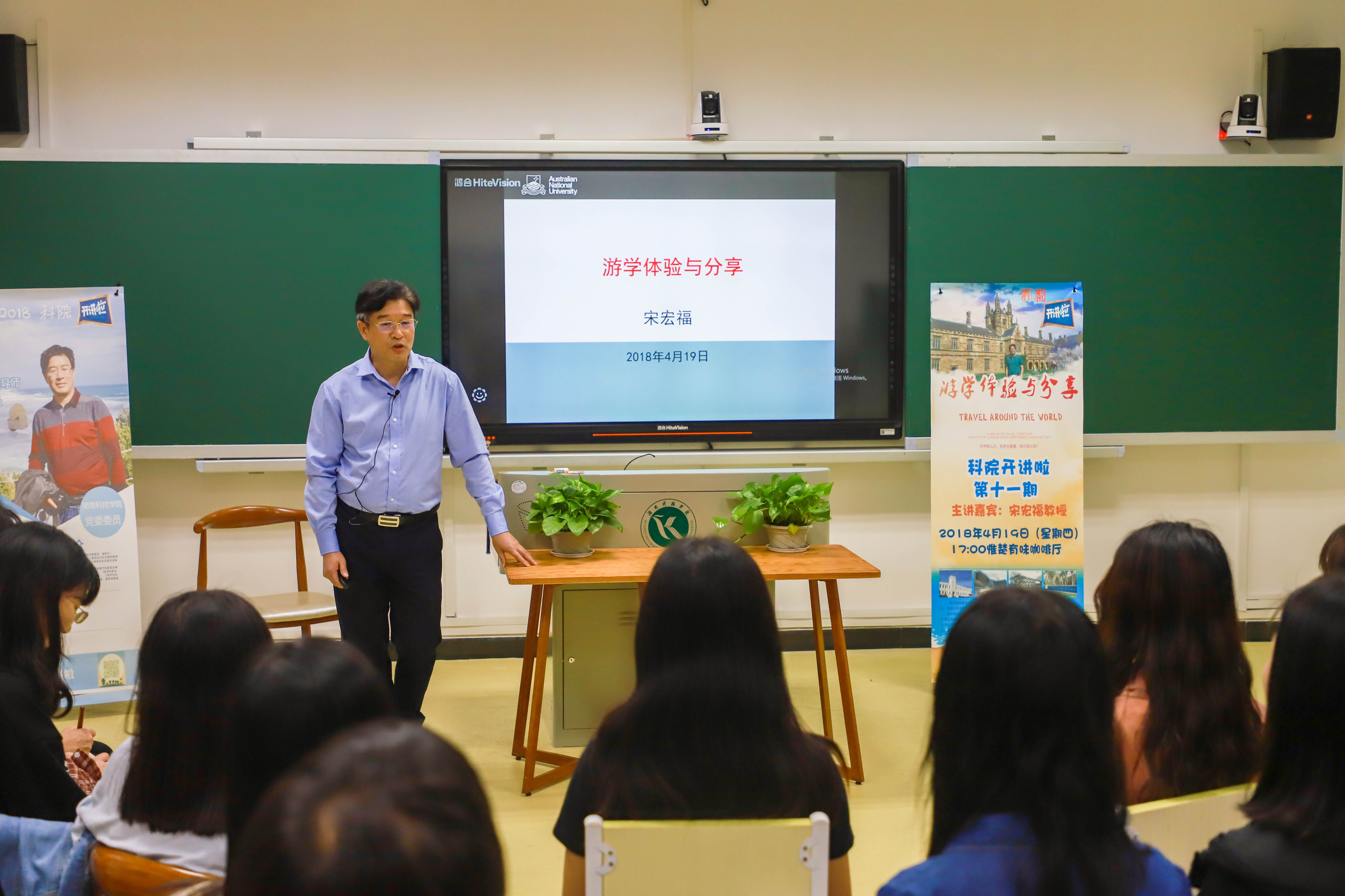 本网讯 “游学不仅能扩大知识面,也能在不同的文化交流中相互借鉴,增强自身语言能力”。4月19日晚,由校团委主办的师生互动讲坛“科院开讲啦”在教师教育学院智慧教室如期开讲,副校长宋宏福教授应邀与来自全校各个学院的30余名学生代表分享游学体验。