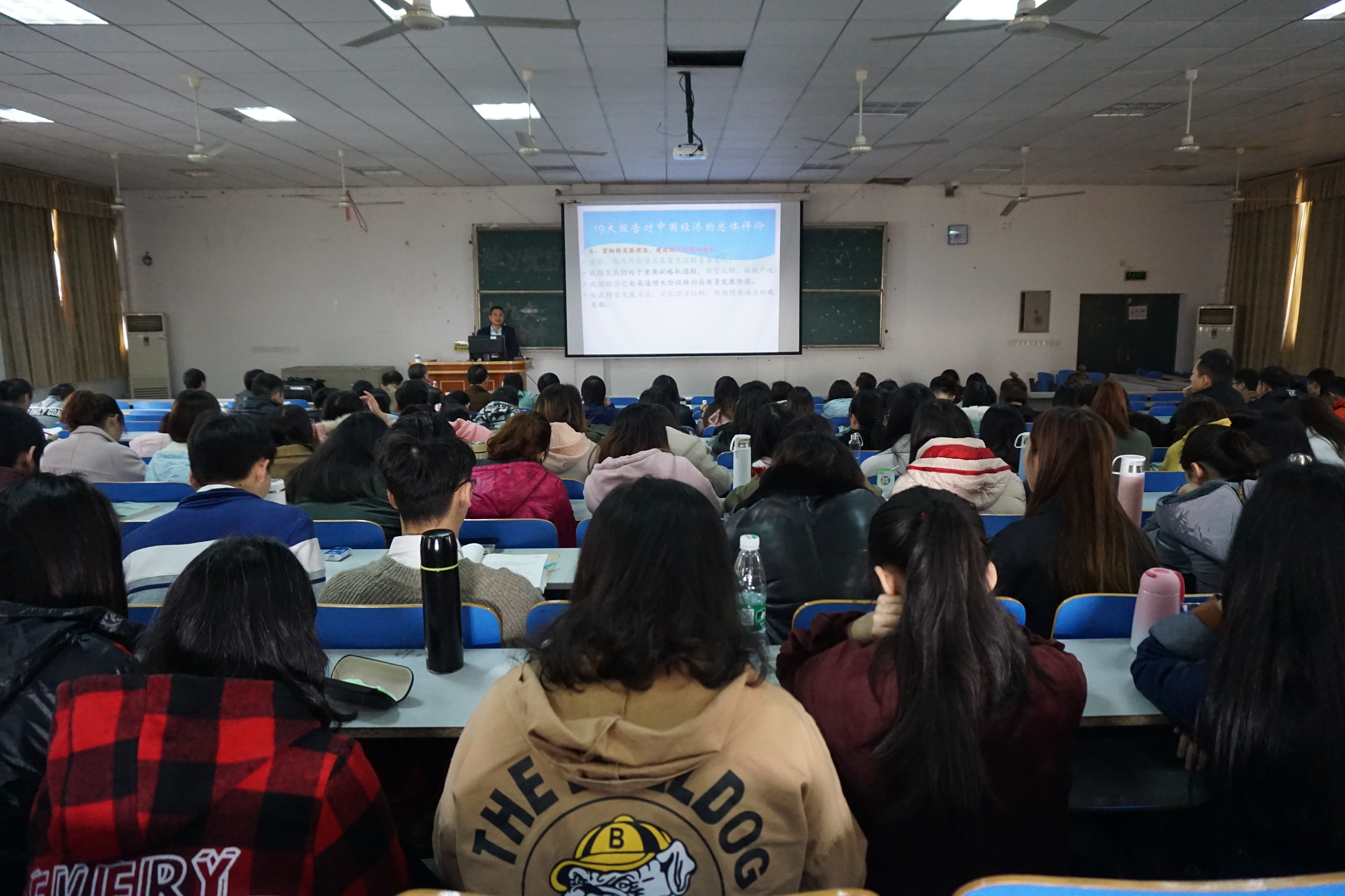 本网讯 11月27日上午,经济与管理学院邀请中国社会科学院研究员、中国社会科学杂志社二部主任林跃勤博士来校做题为“十九大后中国经济创新转型发展目标与前景”的讲座。湘潭大学副教授朱健博士、土木与环境工程学院党总支书记张俭民以及300余名国贸、金融专业学生聆听了讲座,该院院长李清泉主持讲座。