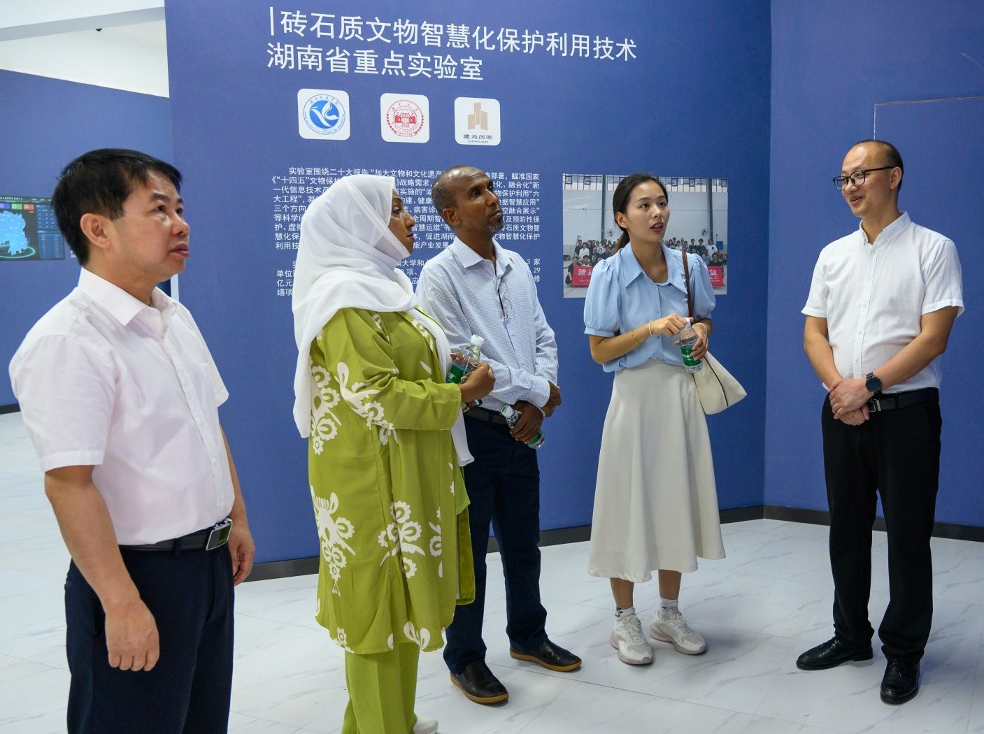 奥萨曼・哈马德・马哈茂德一行先后考察了学校工程训练中心、砖石质文物智慧化保护利用技术湖南省重点实验室、航空模拟仓和智汇科创中心。