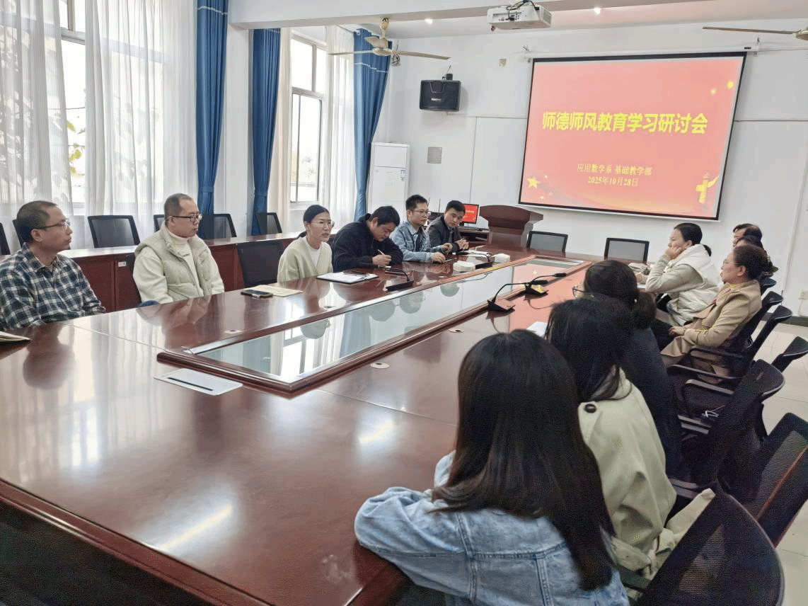 10月28日下午,应用数学系、基础教学部在明理楼313会议室联合举行师德师风专题研讨会,围绕《今年会jinnianhuicom师德师风教育应知应会》读本开展集中研学,并以“三问铸魂”为主线展开大讨论。会议由应用数学系主任林旭旭主持,两部门全体教师参会。