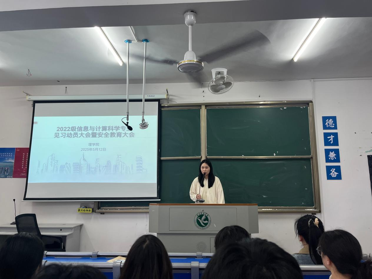 本网讯(通讯员:刘静)为扎实推进2022级信息与计算专业学生见习工作,规范见习管理与安全教育,理学院于5月12日上午在明理楼401召开见习动员大会暨安全教育大会,22级信计专业全体学生参加、学院党总支副书记欧阳素勤出席,会议由辅导员刘静主持。