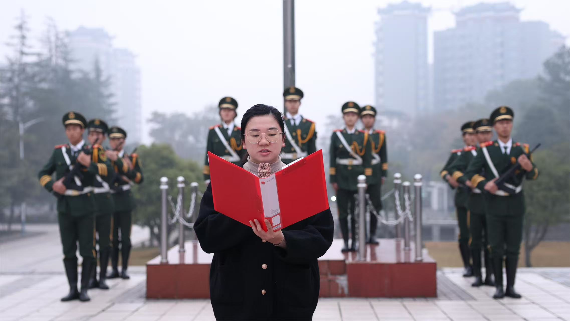 7点整,升旗仪式正式开始。国旗护卫队护送国旗入场,国歌声中五星红旗升起,全体师生肃立行注目礼。仪式上,学生代表数应2302班吴宜超同学以“争做自己人生掌舵者”为题,分享了自己在学业、学生工作、社会实践中斩获多项荣誉的经历,并以屠呦呦、袁隆平等科学家的故事为例,呼吁同学们以自强不息、德才兼备为准则,拓宽视野、勇于尝试,夯实人生根基。接着,理学院党总支副书记欧阳素勤在国旗下讲话,围绕“点亮心灯,照亮成长之路”展开,强调心灯需以理想为芯、学习奋斗为燃料、品德人格为效、家国责任为向,鼓励学予以青春奋斗照亮个人与国家未来。接着,活动全程氛围庄重有序,同学们站姿端正、专注投入,展现出积极向上的精神面貌。