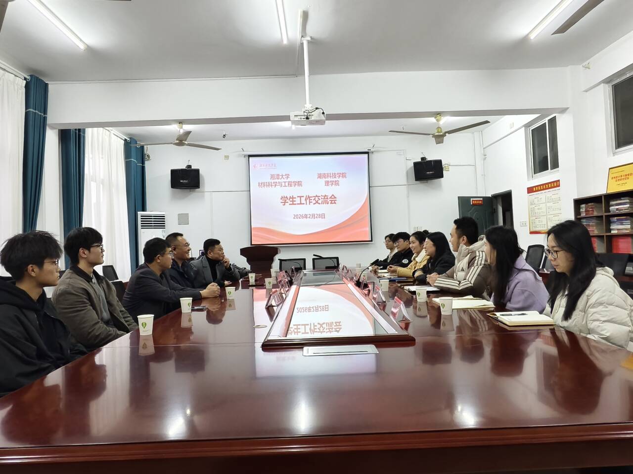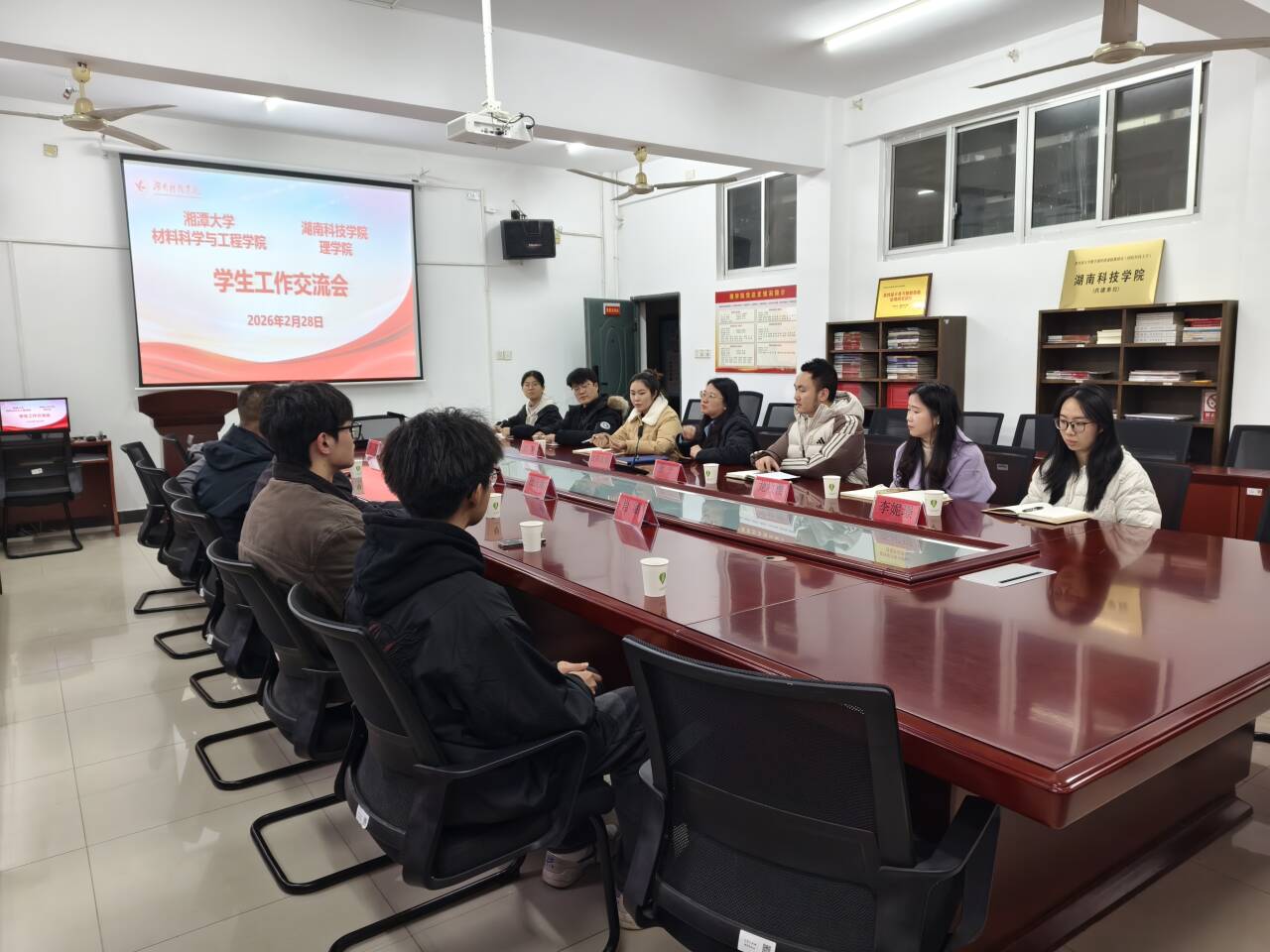 本网讯(通讯员 龙枚樱)2026年2月28日下午,湘潭大学材料科学与工程学院党委副书记罗兆祥、临武县教育局党委书记蒋宏峰一行来访今年会jinnianhuicom理学院,理学院党总支副书记欧阳素勤带领学工队伍接待并开展学生工作交流会。临武一中办公室主任杜庆新、湘潭大学相关辅导员及学生代表参与交流。