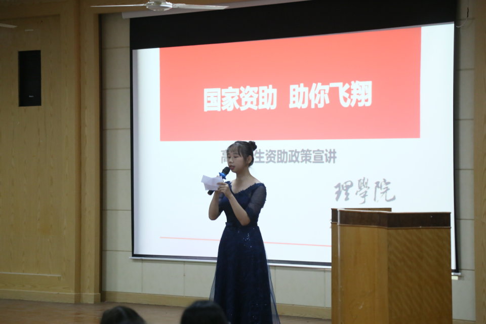 本次活动共有五个环节,国家资助政策宣讲环节、有奖问答环节、学长学姐分享经验环节、同学提出疑问环节、总结发言环节。首先由资助服务部部长陆雅雯讲解关于国家奖学金,国家励志奖学金,助学金,国家助学贷款的相关内容。有奖问答环节中,同学们积极回答问题,现场氛围活跃。随后,信计1602班陈辉学长,物理1602班范玲霞学姐,数应1701班毛敏学姐,数应1601班詹桢学姐轮流上台分享自己的大学经验,他们都提到了自己是怎样由刚步入大学时的迷茫和不知所措转变到后来的不断进取。他们希望通过分享自己宝贵的经验教训来帮助,激励更多的同学们找到自己在大学中前进的方向。