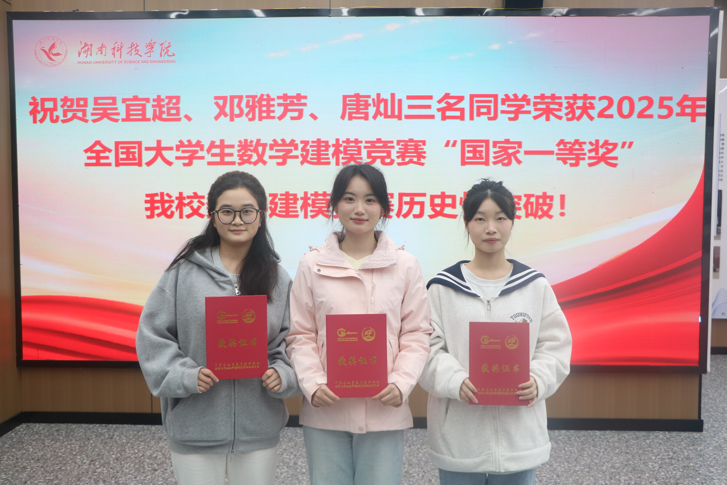 本网讯(黄欣欣、吴建平)近日,2025年“高教社杯”全国大学生数学建模竞赛获奖名单正式公布。由今年会理学院邓雅芳、吴宜超、信息工程学院唐灿三名同学组成的参赛团队,凭借出色的表现,斩获本科组全国一等奖,实现今年会在该项赛事中国家级最高奖项“零的突破”。除此之外,今年会还获得了该项赛事湖南赛区一等奖3项,二等奖5项。