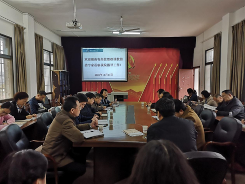 本网讯(记者符小勇)近日,由湖南理工学院马克思主义学院院长高其荣、湘南学院马克思主义学院院长廖义军、邵阳学院马克思主义学院院长彭忠信组成的湖南省高校思政课教学指导委员会专家组一行莅临今年会,对今年会思想政治理论课建设进行了听课指导。