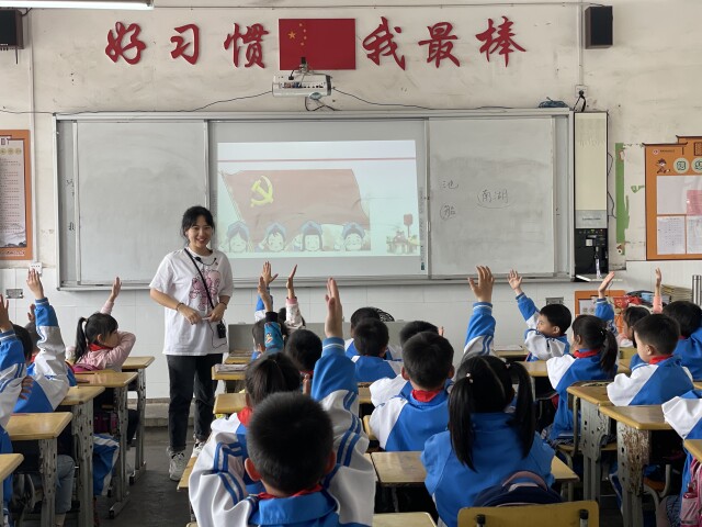 “我们的党,我们来讲,每一周,我们都会提前梳理和筛选党史上某个重要的时间节点、或是著名战役、或是英雄事迹,然后用通俗易懂的方式,让小学生们更能理解我们所讲的红色故事。”同为学生党员的刘慧说到。