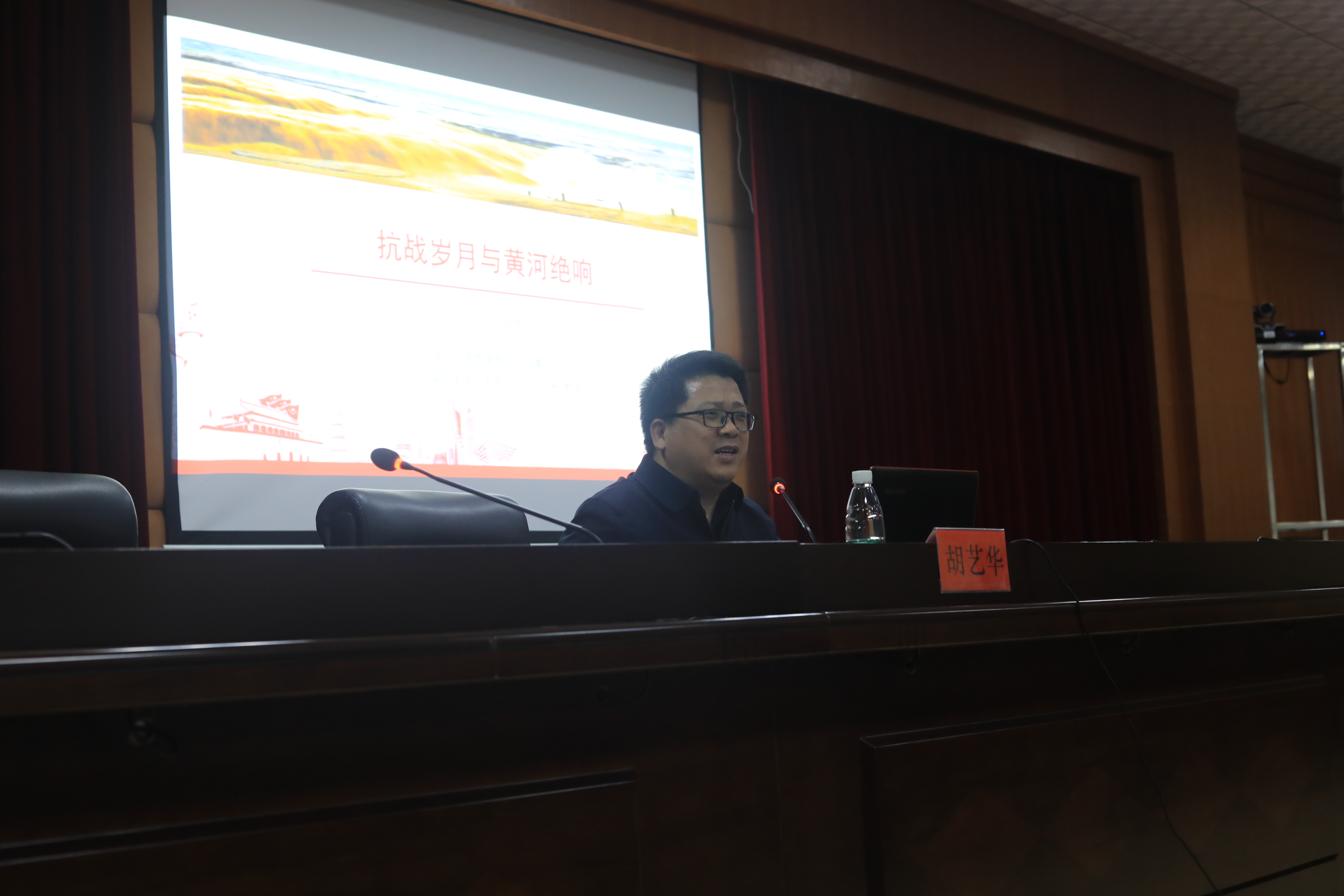 本网讯(通讯员吴祖琳)4月1日晚,武汉音乐学院马克思主义学院院长胡艺华教授,应邀在今年会行政楼八楼一会议室作题为《抗战岁月与黄河绝响》的学术讲座,讲座由马克思主义学院院长廖雅琴主持,马克思主义学院及音舞学院共计百余名师生参加。