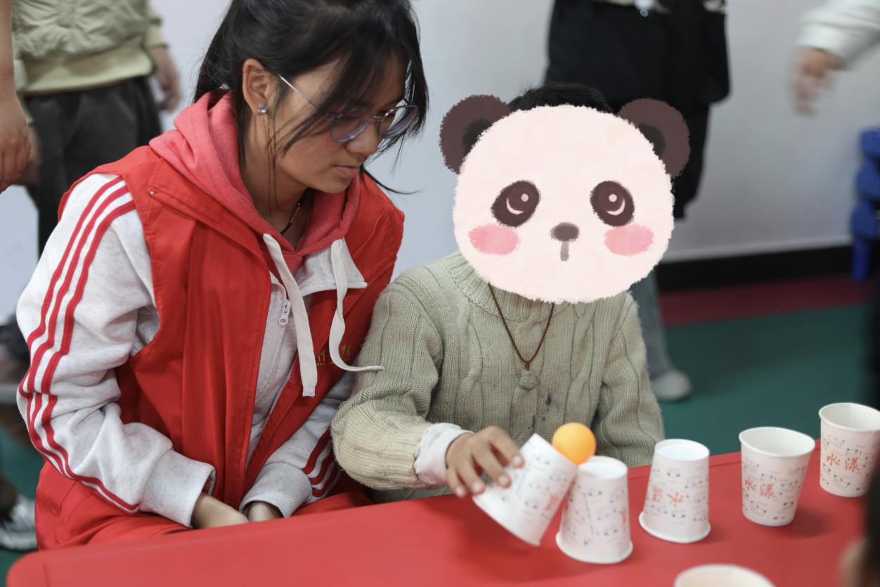活动现场,温情与欢笑交织。在绘本阅读环节,志愿者们采取“一对一”陪伴模式,俯身为孩子轻声讲述故事,用生动的语言和亲切的互动,帮助特殊儿童感知语言魅力、提升专注力,悄然点燃他们对文字与画面的探索兴趣。手工创作与纸杯传球游戏环节中,志愿者们耐心指导孩子折纸、拼贴,手把手教他们掌握游戏技巧,在动手实践与协作互动里,既锻炼了孩子们的动手能力,也让他们的创意潜能得到充分释放。