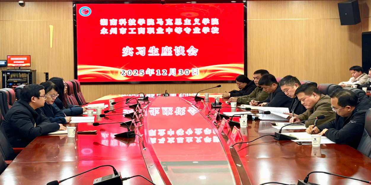 本网讯(通讯员 王忠君)12月30日,马克思主义学院院长廖雅琴带队赴永州市工商职业中等专业学校开展思政专业教育实习检查,永州市工商职业中等专业学校党委书记杨林海、校长蒋崇献、副校长胡志成等参加座谈。
