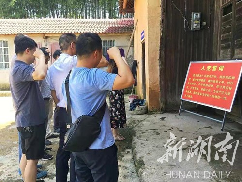 随后,全体党员在红六军指挥部旧址重温入党誓词,行走在革命先辈们浴血奋战过的土地上,缅怀先烈,追忆英雄,不忘初心,牢记使命。