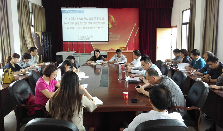 本网讯(通讯员 李艳)为深入贯彻落实全国高校思想政治工作会议精神,5月3日上午,马克思主义学院在鹤鸣楼405召开教学专题会议,就如何提高思政课质量和水平进行部署和研讨。