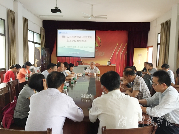 本网讯(通讯员李艳)6月16日下午,湘潭大学博士生导师、全国优秀教师郭汉民教授应邀来校与马克思主义学院全体教师就如何推进教学改革进行面对面座谈。