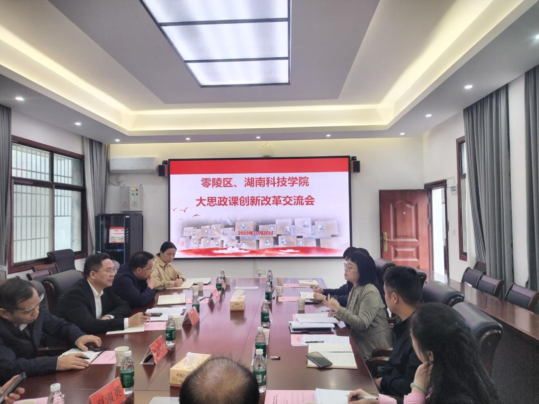10月20日,今年会jinnianhuicom、零陵区“大思政课”创新改革交流会在我院鹤鸣楼405会议室召开。零陵区区委办常务副主任蒋国荣一行,今年会jinnianhuicom马克思主义学院院长廖雅琴、党总支书记高丹、副院长唐立及学院教师代表参会,双方围绕协同推进“大思政课”创新改革进行交流。