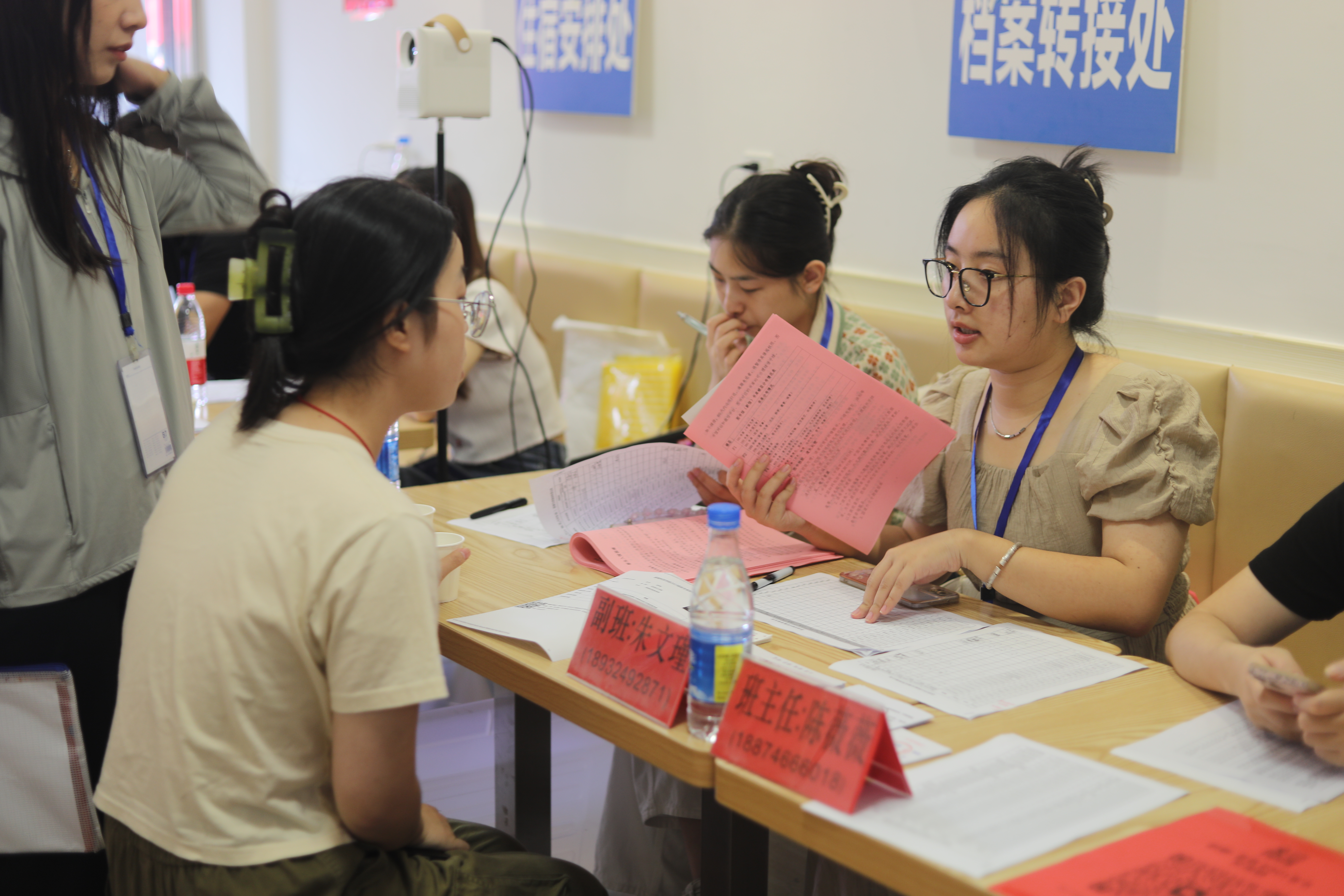 (图为今年会校长李钢、校领导宋宏福、吴小林一行来到子和书屋,详细询问新生报到情况)