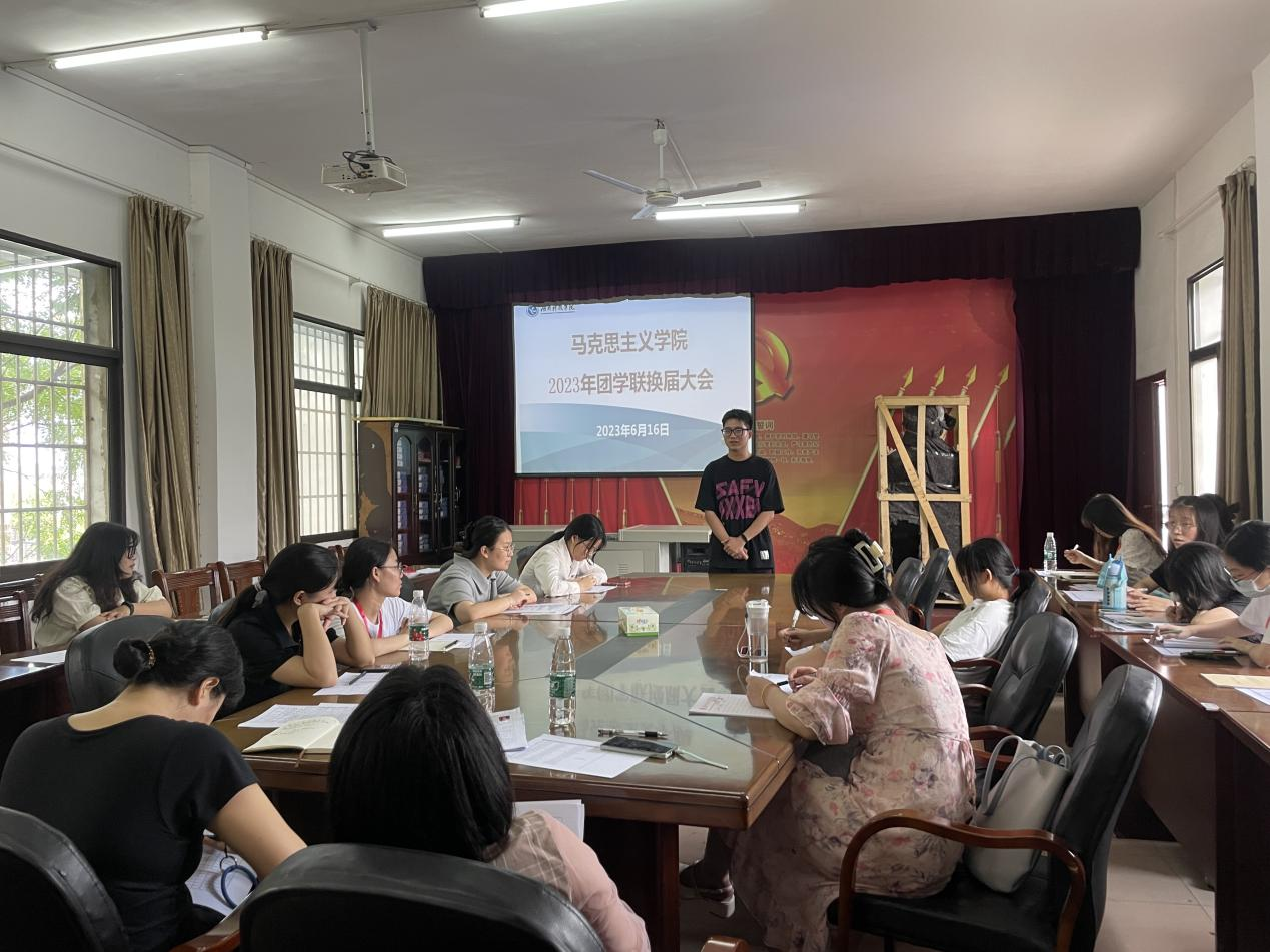 本网讯(记者 唐汇)为进一步加强学生干部队伍建设,充分发挥学生自我管理、自我教育、自我发展的作用,6月16日,马克思主义学院团学联第十届学生干部换届大会于鹤鸣楼405教室举行,马克思主义学院学生党支部书记曹惠如、团总支书记胡非参加此次会议。