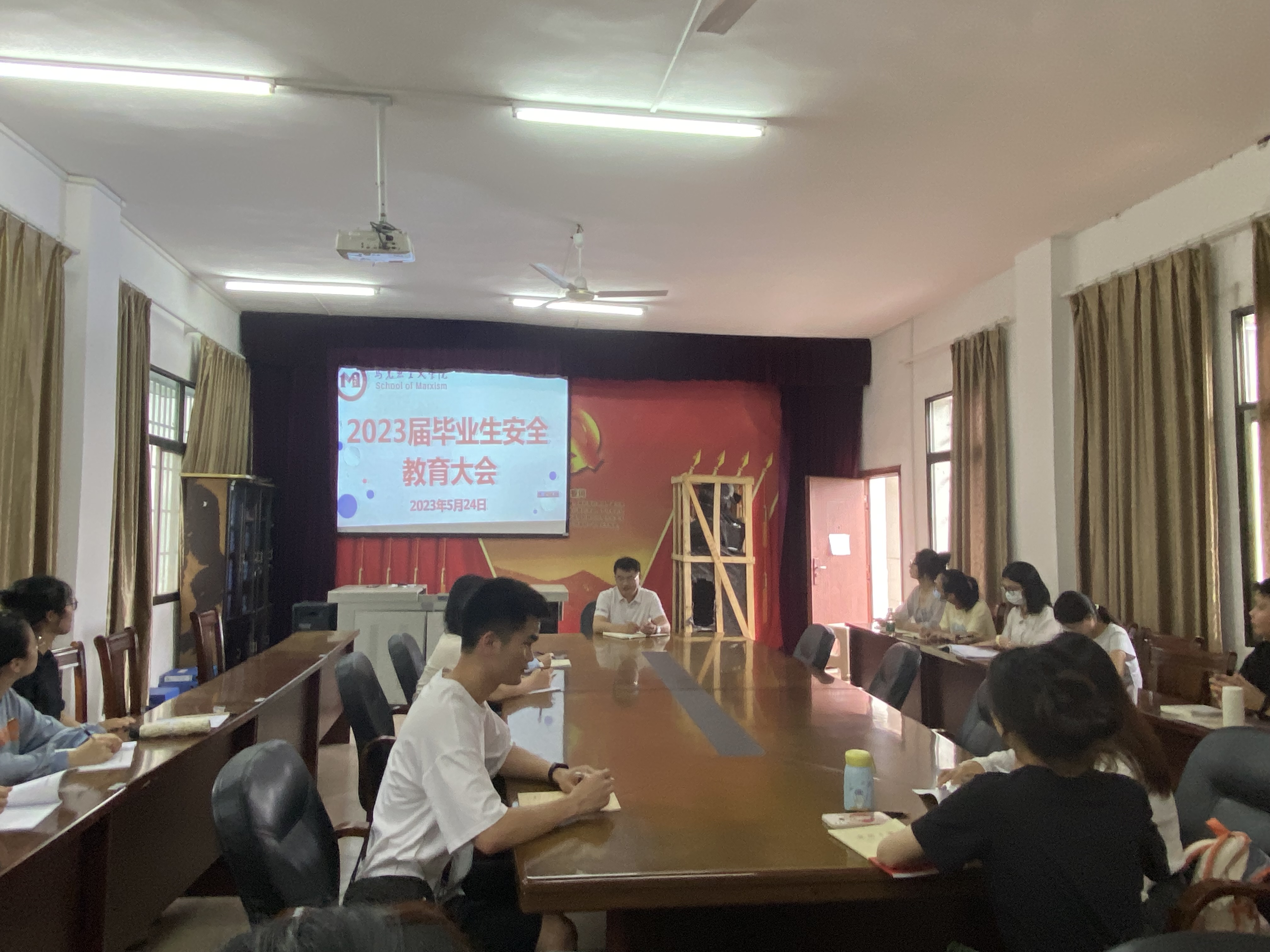 本网讯(记者 左琛)为确保2023届毕业生安全文明离校,营造和谐有序的毕业氛围,同时提高在校其他年级学生的安全意识,5月11日-25日,马克思主义学院分别组织各班级学生于鹤鸣楼405、406、407、501等教室开展“安全教育”主题班会。