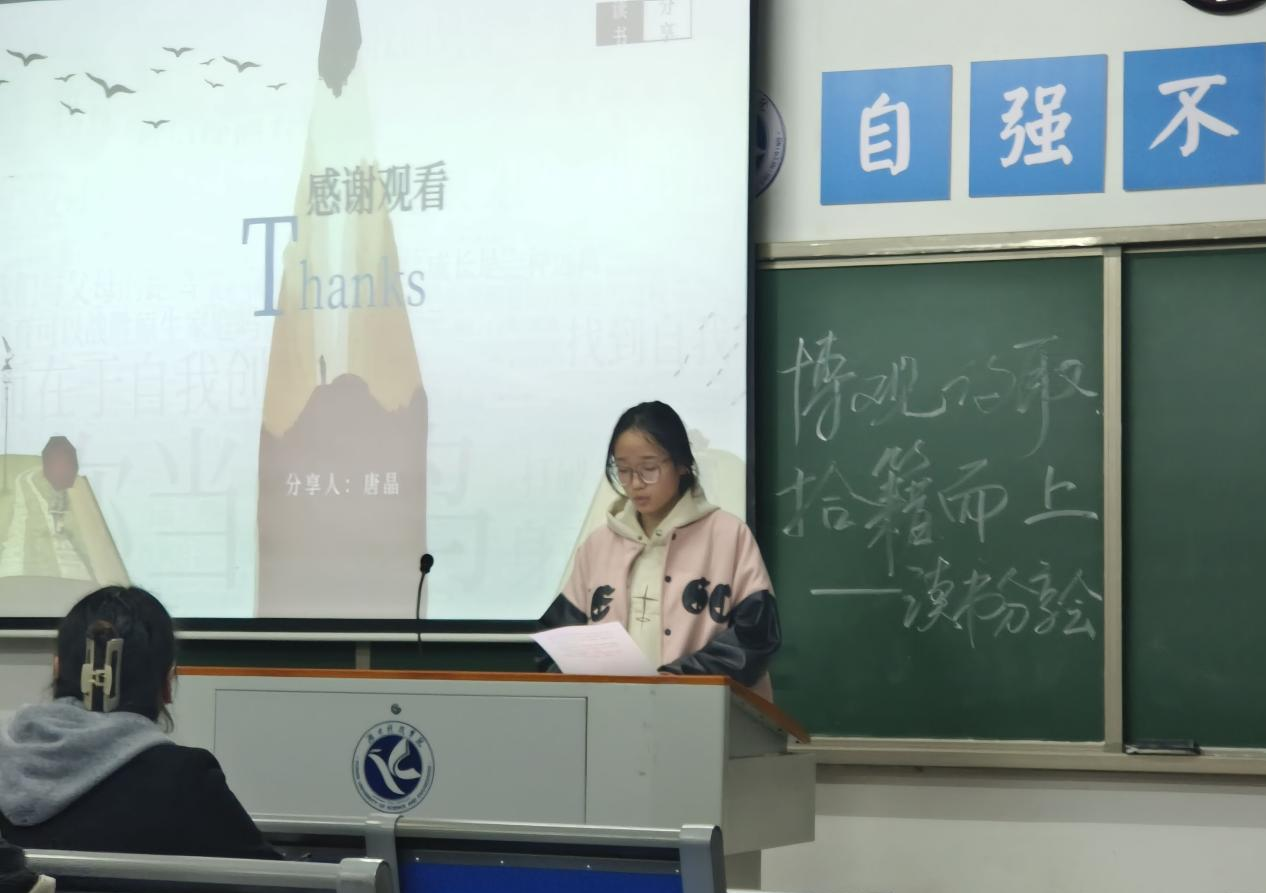唐晶同学分享了《你当像鸟飞往你的山》,她感悟到:“读完这本书后,我只收获了一点点力量。一点勇气的力量支撑我勇敢走完剩下的路程;一点幸福的力量,提醒我时刻珍惜现有的生活;一点宽容的力量,告诫我释怀过去面向未来;一点自信的力量,勉励我坚定信念,不断提升自我。”