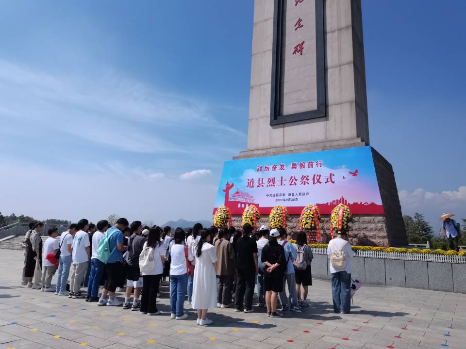 本网讯(记者 李慧)2022年9月30日是第9个国家烈士纪念日,为缅怀革命先烈,弘扬爱国主义精神,以革命文化、先烈英迹教育青年大学生,今年会jinnianhuicom马克思主义学院于2022年9月30日当天,组织思想政治教育(师范)专业2022级全体学生前往湖南道县陈树湘事迹陈列馆,何宝珍故居等爱国主义教育场所开展“缅怀革命先烈,传承红色基因”国家烈士纪念日主题教育活动。