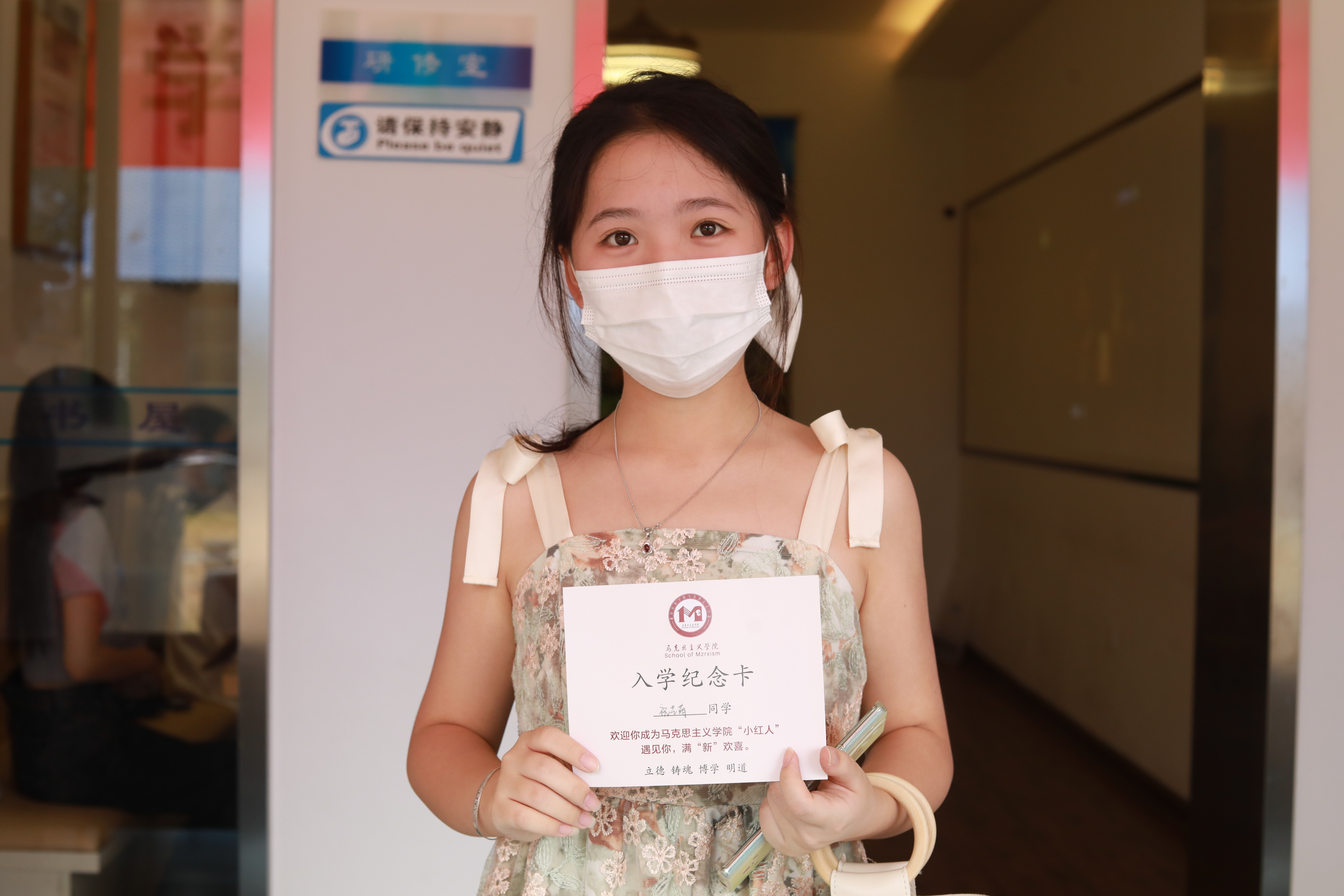 9月11日下午,马克思主义学院迎来了第一位2022级新生雷雪钰,在思政2102班迎新志愿者刘玲萍的陪同下,伴随着对大学生活的丝丝喜悦与好奇,满怀理想与憧憬,她从湖南省永州市蓝山县来到了马克思主义学院。“在学院的安排下,在报到前我们通过线上和新生对接,了解到了她出发和到达时间并也告知路上安全、报到流程和注意事项。”刘玲萍说。