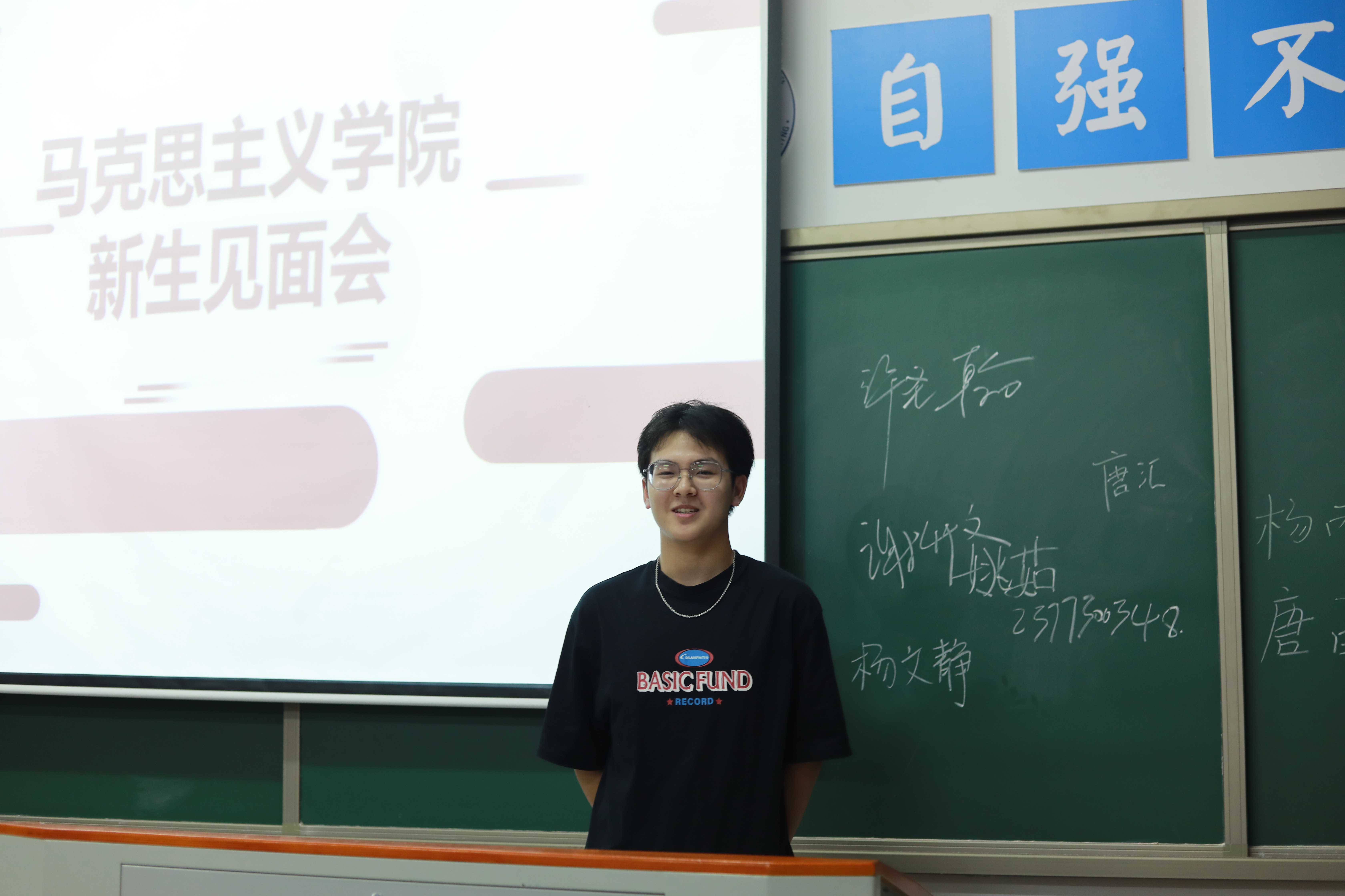 在2022级新生介绍环节中,班主任黄丽老师寄语新生:书山有路,学海无涯,勤能补拙,苦亦甘甜。希望同学们能在马院中始终保持自主学习、独立思考的习惯,把握好学习与生活的平衡。从此刻开始的未来四年里,我将陪伴大家、与大家共成长,期盼大家用新知识、新阅历、新经验,向更远、更高处进发!