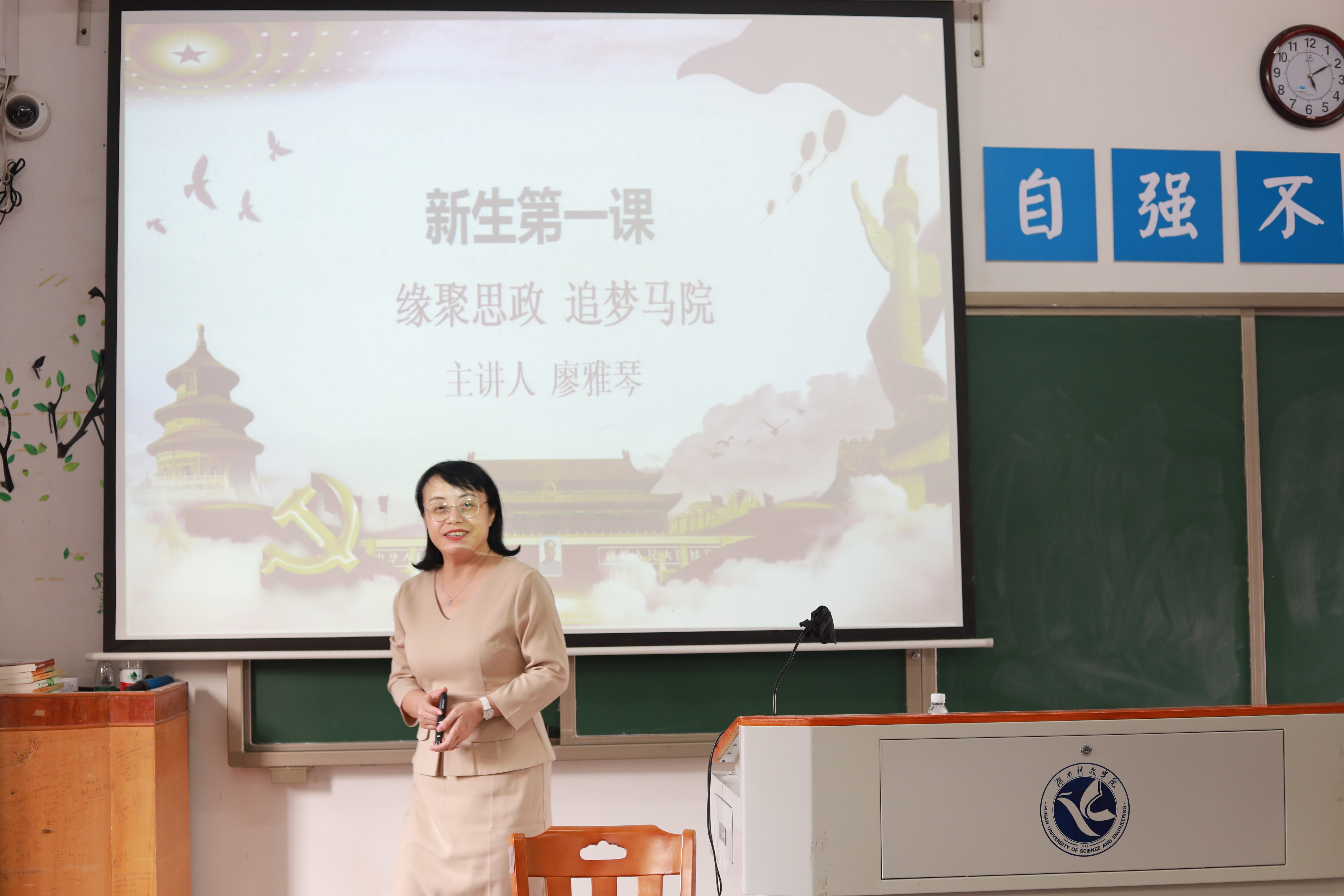 见面会上,高丹首先代表马克思主义学院全体老师对2022级新生的到来表示热烈欢迎,并为新生们介绍学院各领导以及老师。随后,廖雅琴院长在新生第一课中向同学们介绍了马克思主义学院的师资队伍、办学条件、教学质量、学生培养特色等多方面。廖雅琴院长对新生提出了三点要求:一要善于提问,勤于思考,努力修养自身;二要志存高远,懂得大学之道,明确人生之路;三要善于掌握时间,读懂自我定位,学好专业本领。